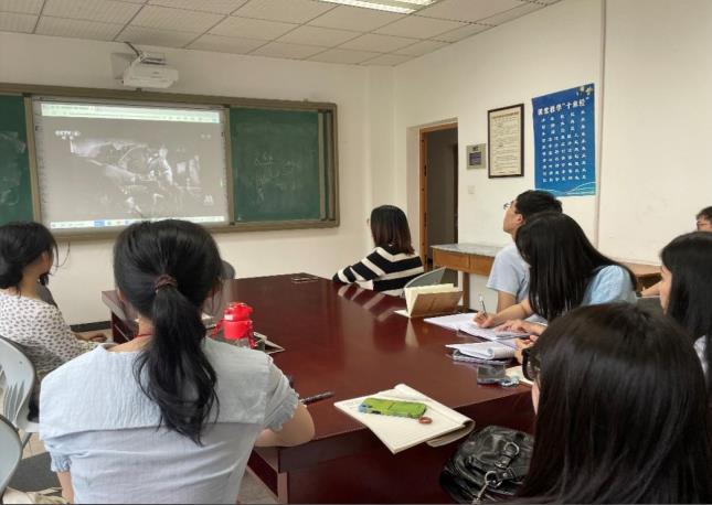 在理论学习基础上,进行“全景式”教学,欣赏中华人民共和国成立后第一部反映中国少年儿童在抗日战争时期的对敌斗争的儿童影片《鸡毛信》,沉浸式体验儿童团团长海娃为将事关抗日的鸡毛信送到八路军手中,与日本侵略者英勇斗争的故事。影片生动诙谐,又不失曲折跌宕,塑造了一个坚贞顽强、机智勇敢的抗日小英雄海娃艺术形象,支部成员因幽默的旁白频频发笑,又为海娃艰险的征程担心紧张。在这场沉浸式的观影中,支部成员们体会到了抗日先烈的奋勇直前,传承红色革命精神。