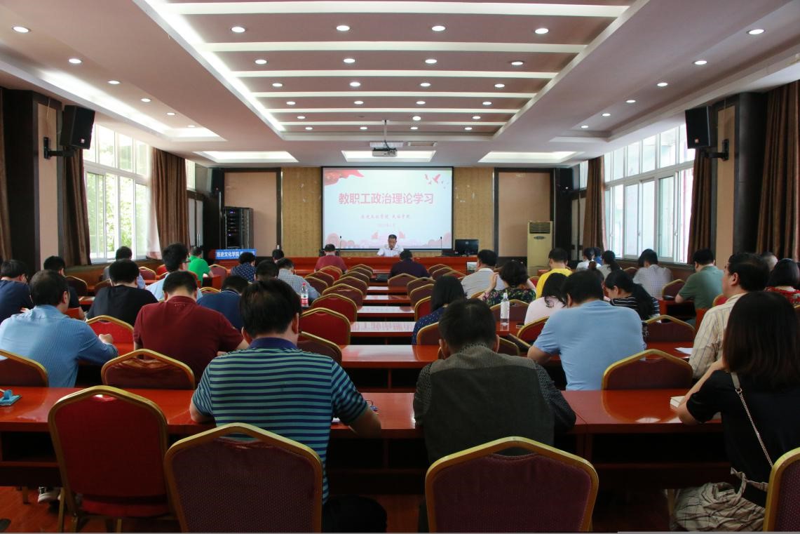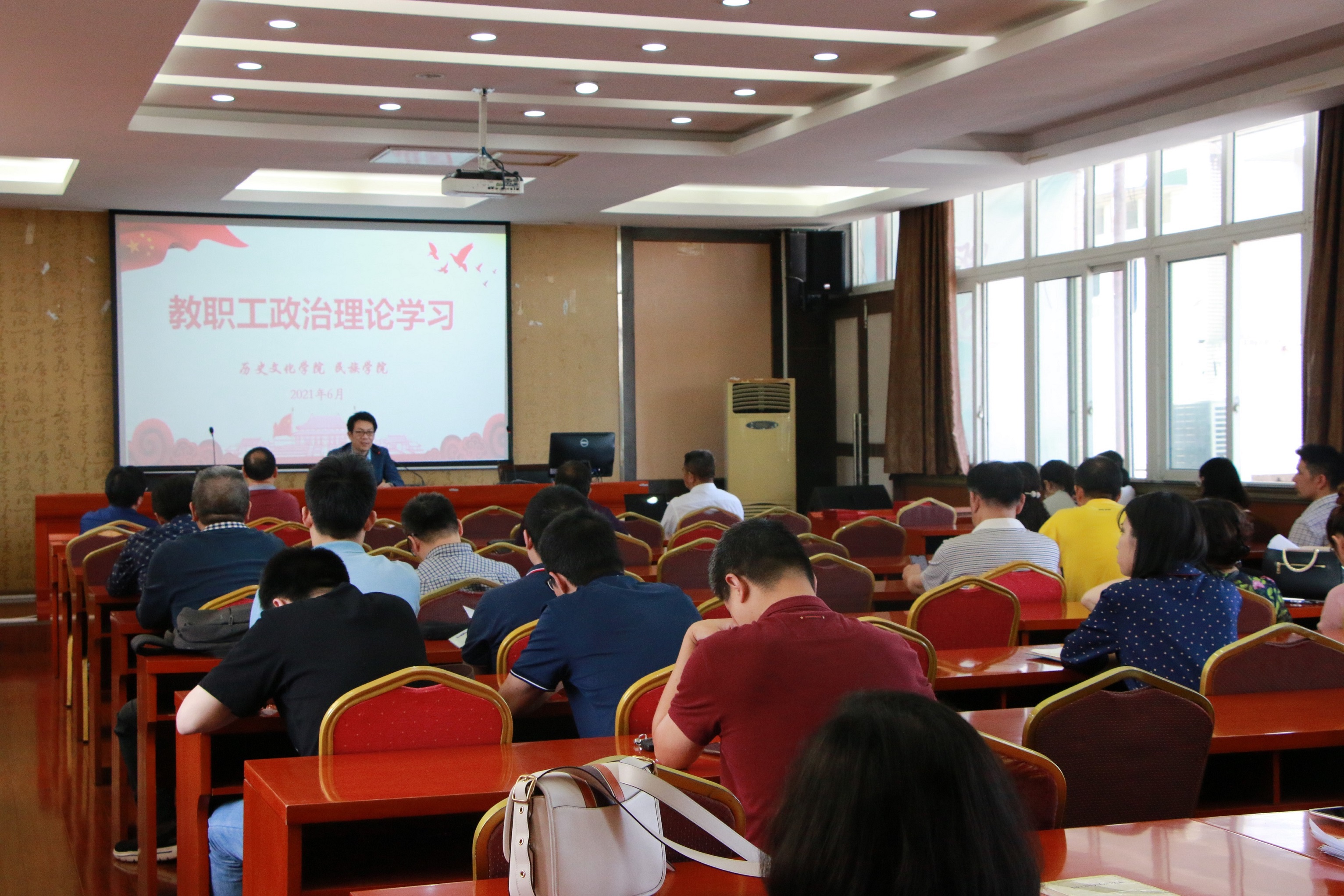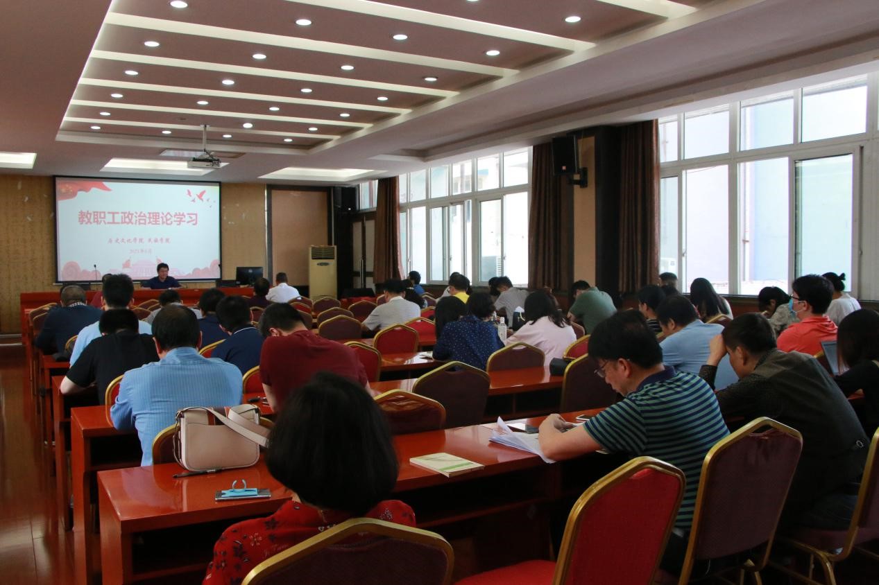 党委组织全院教职工在荟文楼7楼报告厅进行2021年第六次政治理论学习。此次大会的主要内容是传达学校近期工作会议精神,汇报学院目前主要工作开展情况,并开展政治理论学习。会议由学院党委书记罗庆昌主持。