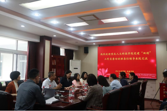 首先,学院党委书记罗庆昌对重庆人文科技学院各位领导、老师的到来表示热烈欢迎。他对学院党建成效、学科发展、人才培养等工作进行了简要介绍,对全国党建工作样板支部培育创建经验进行分享。
