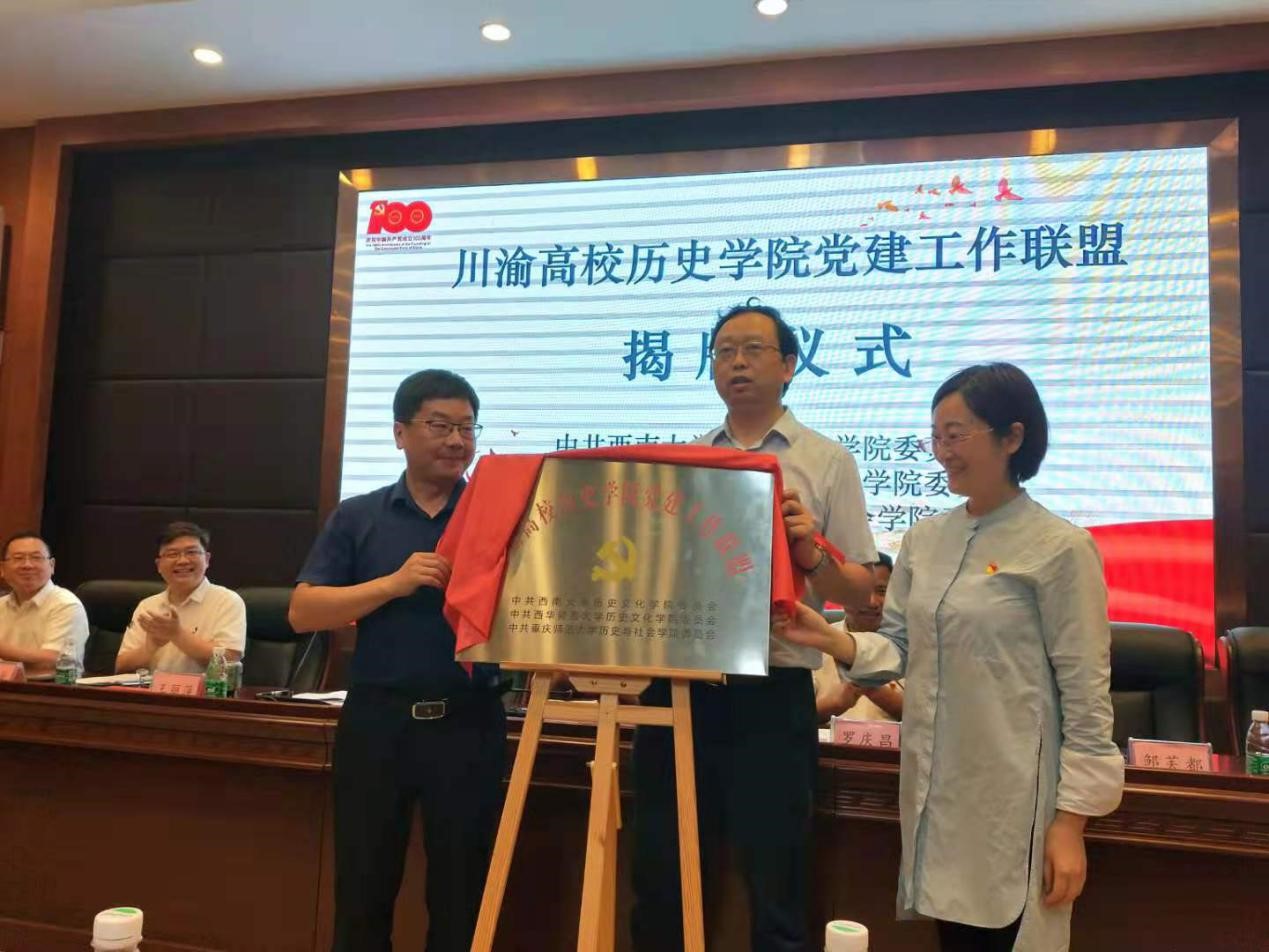 参观调研结束后,三校全体党员参加了川渝高校历史学院党建工作联盟签约仪式,由罗庆昌书记代表91porn 91porn 党委正式签约,91porn 邹芙都同志参加揭牌仪式,教工一支部书记刘志英接收授牌。此次三校联盟签约,有助于历史学者组成的党支部发挥学科优势、专业优势和人才优势,通过联盟推动川渝地区高校党建工作更上一层楼,三校历史学院党支部将会抓住契机,在今后进一步加强交流、互通党建工作经验,推动党建与事业的融合发展,在成渝双城经济圈建设和民族复兴大任中建功立业。最后,在“党课开讲啦”环节,91porn 91porn 副院长赵国壮同志、西华师范大学91porn 院长朱华同志和重庆师范大学历史与社会学院党委书记王丽萍同志分别作为历史学者代表,为全体党员讲授党史示范课。