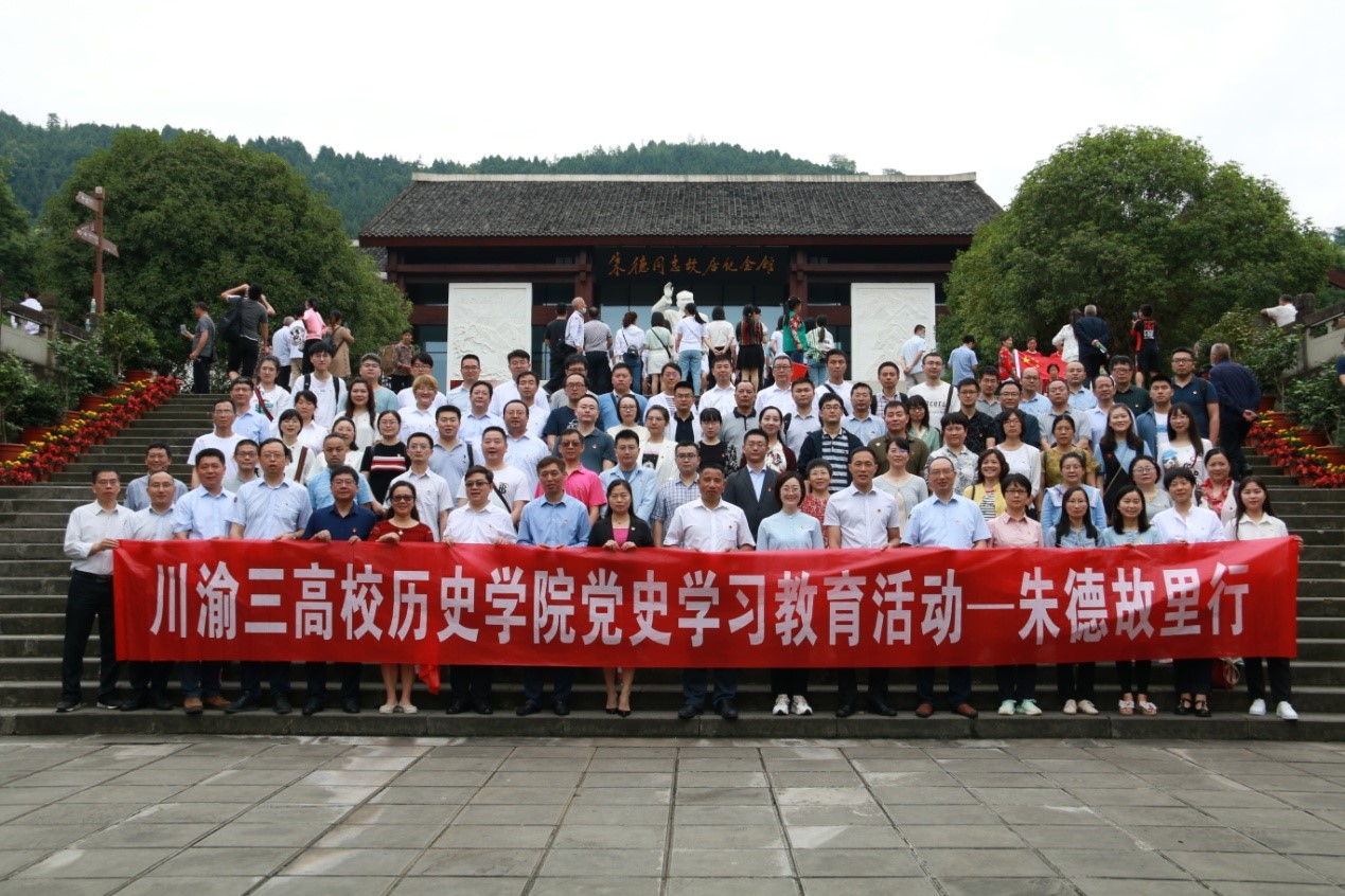 为追寻先辈红色足迹,重温革命先烈的艰苦奋斗光辉历史,继承和发扬党的光荣传统和优良作风,在中国共产党成立100周年之际,根据学校和学院党委的安排,6月18—19日,党委副书记潘洵同志带领91porn 教工一支部全体党员,与西华师范大学91porn 党委和重庆师范大学历史与社会学院党委的全体党员,共赴四川省仪陇县朱德同志故居,开展“川渝三校历史学院党史学习教育”,西华师范大学党委常委、副校长李敏同志参加了此次活动。