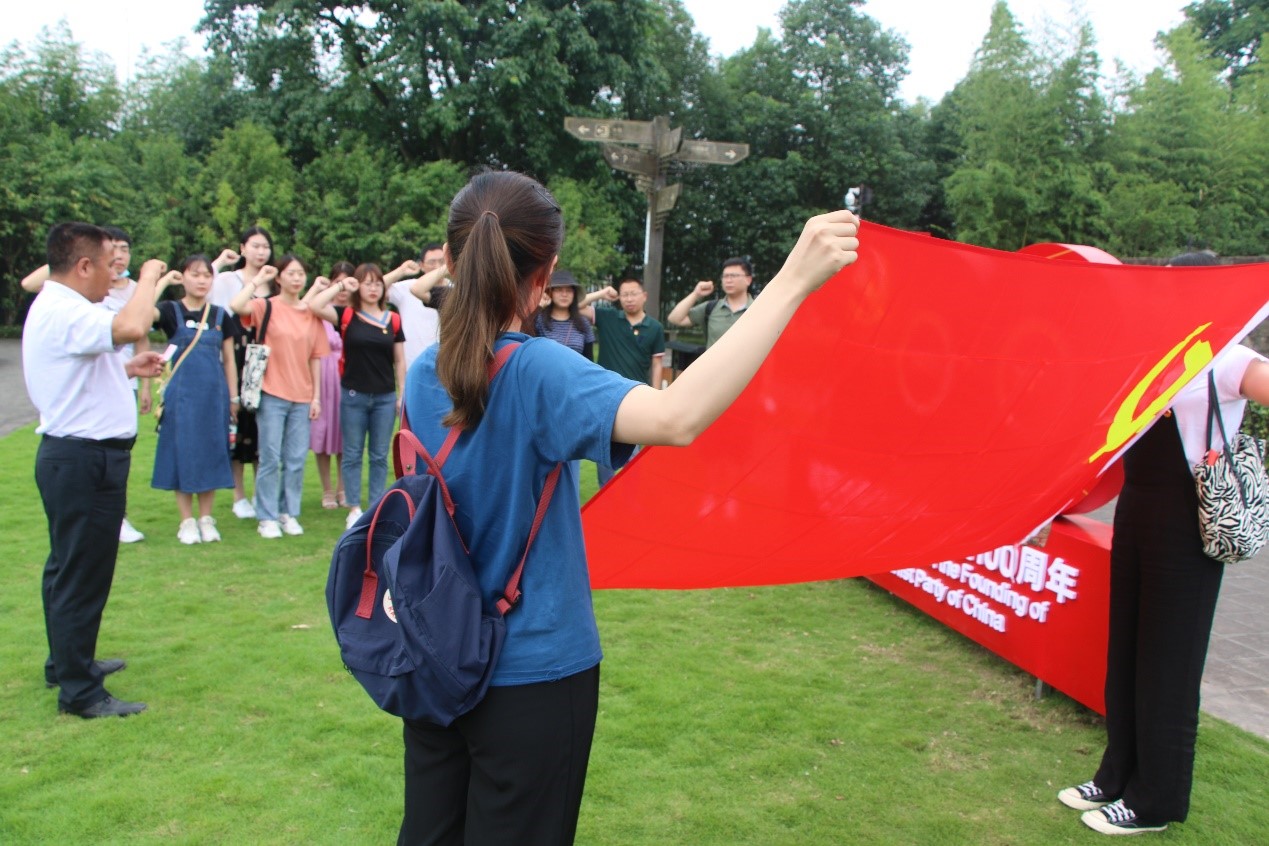 学习完陈独秀的事迹后,全体党员同志,面向鲜红的党旗,怀着无比激动的心情重温了入党誓词,再次体会入党初心。