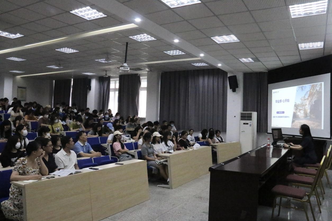 心理健康教育与服务中心主任谢沁怡老师为2021级少数民族预科学生做题为“毕业季,心开始”专题讲座,本次讲座由党委副书记罗朝斌主持,学院全体辅导员及2021级全体预科生及辅导员参加。