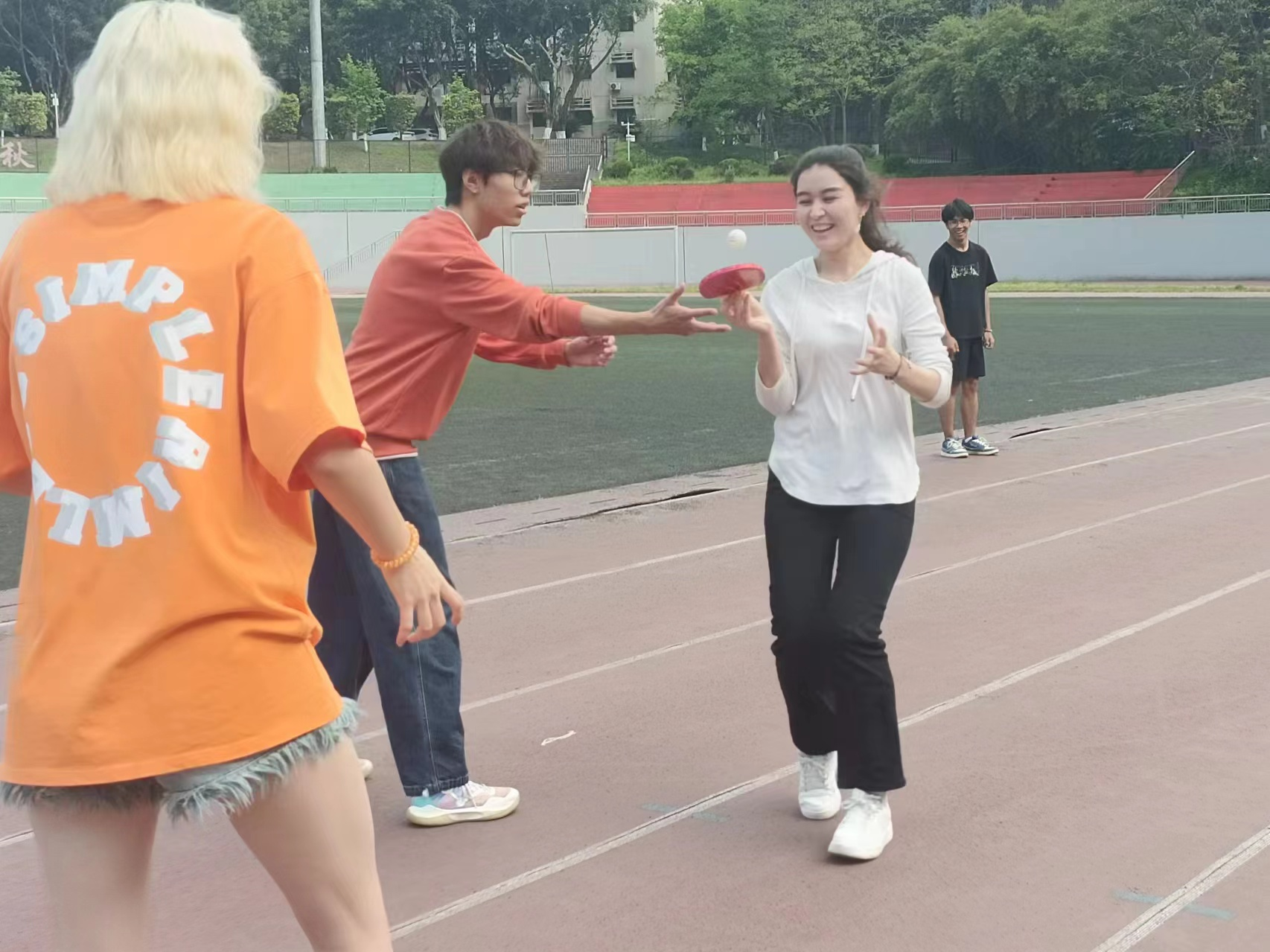 运动会开始,“乒乓球运输”的项目迅速活跃了气氛,运动员几人合作,通过乒乓球拍运送乒乓球进行接力。运动会持续进行,“田间一条龙”“集腋成裘”“两人三足”“五分钟跳大绳”的比赛促进同学们热情不断高涨。伴随一声哨响,最终的拔河比赛开始了,此起彼伏的加油声迅速推动着气氛到达高潮。本次活动展现了同学们乐观向上的品质和集体合作的精神,也不断增进同学情谊和民族凝聚力。