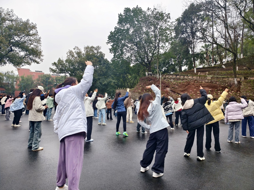 春光无限好,运动正当时。项目热身环节,全体同学排队集结,活力全开,在辅导员带领下全体同学齐跳广播体操,充分热身做好准备。