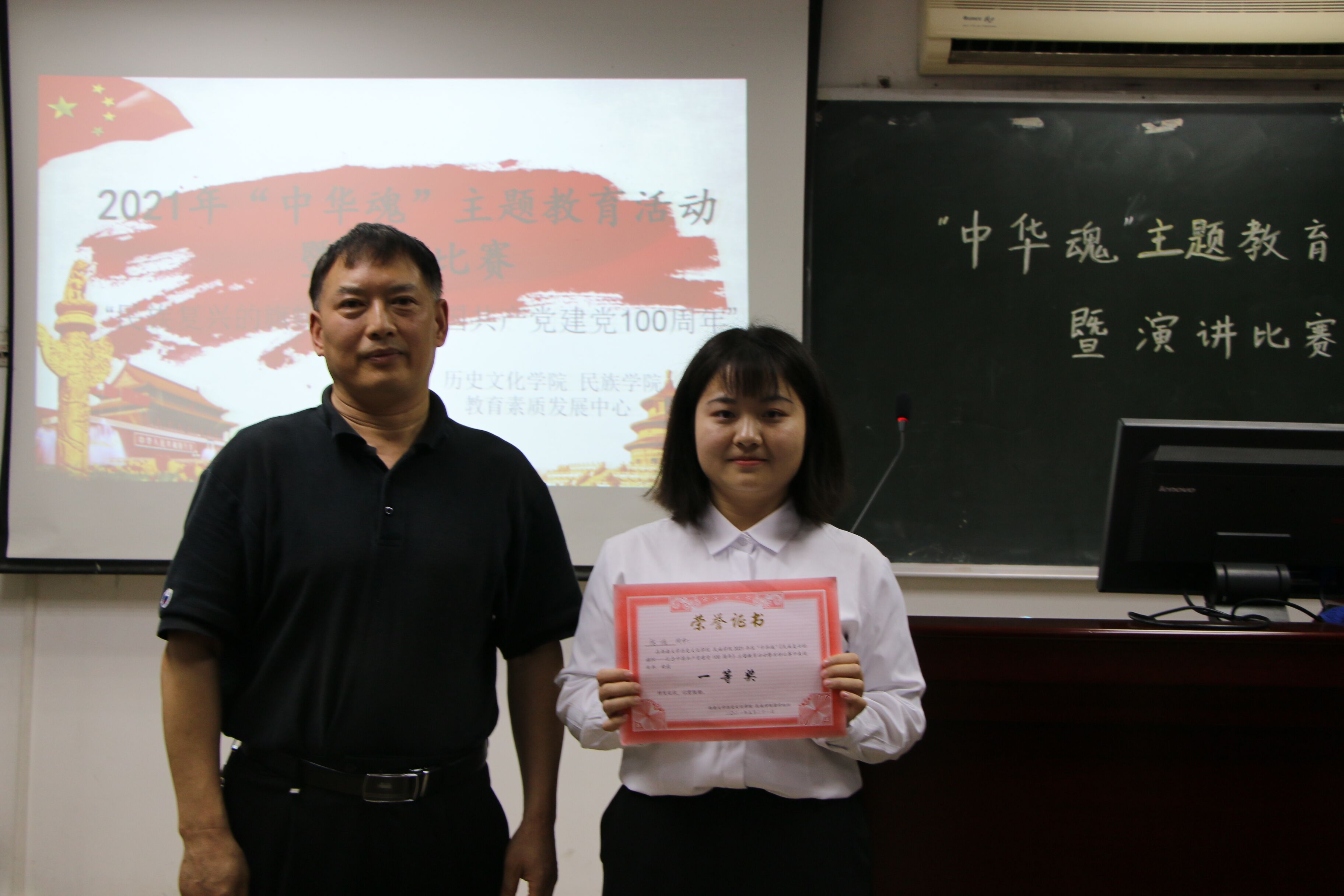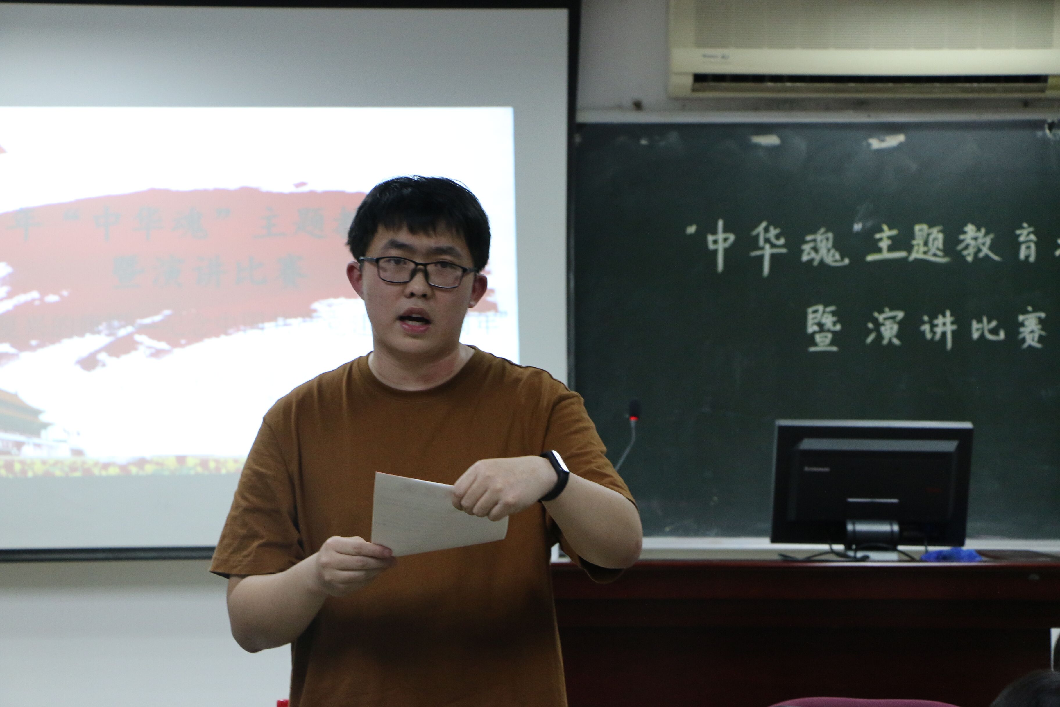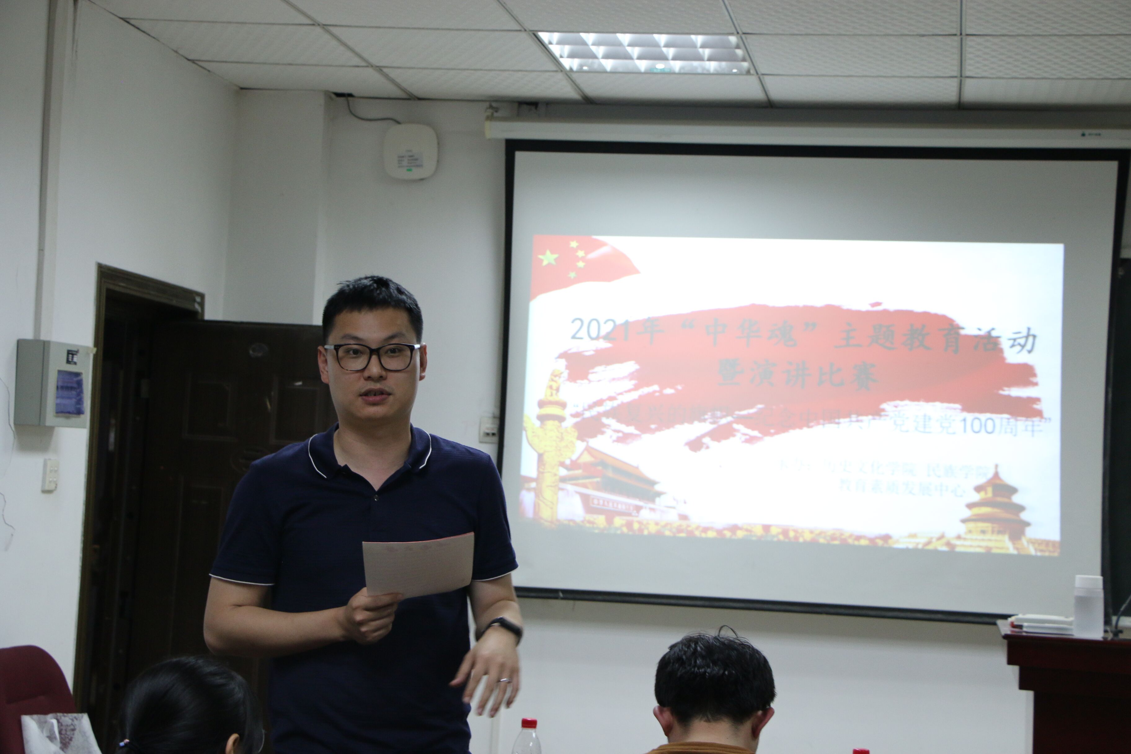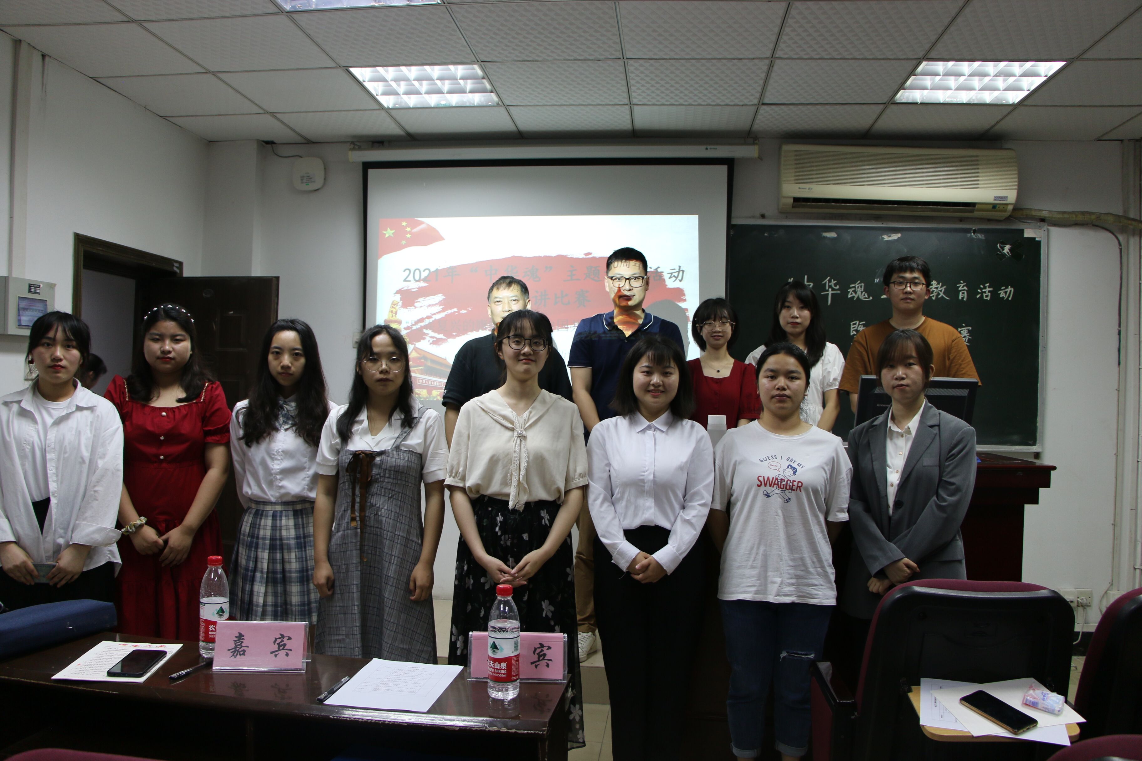 于5月21日在九教419室举办中华魂之民族复兴的旗帜主题教育活动暨演讲比赛,9位选手同台竞技,用诚挚的声音致敬祖国。学院党委副书记罗朝斌老师、团委书记李立老师莅临指导,张亮博学长、黄涛学姐、陈晰月学姐担任评委。
