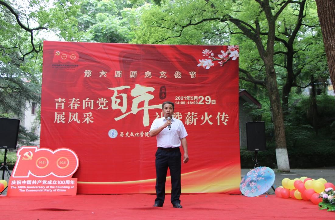 第六届历史文化节在学校北区樟树林举行。本次活动由学院团委承办,主题为“青春向党展风采 百年礼赞薪火传”。学院党委书记罗庆昌、学院党委副书记罗朝斌和全校师生代表参与了本次活动。