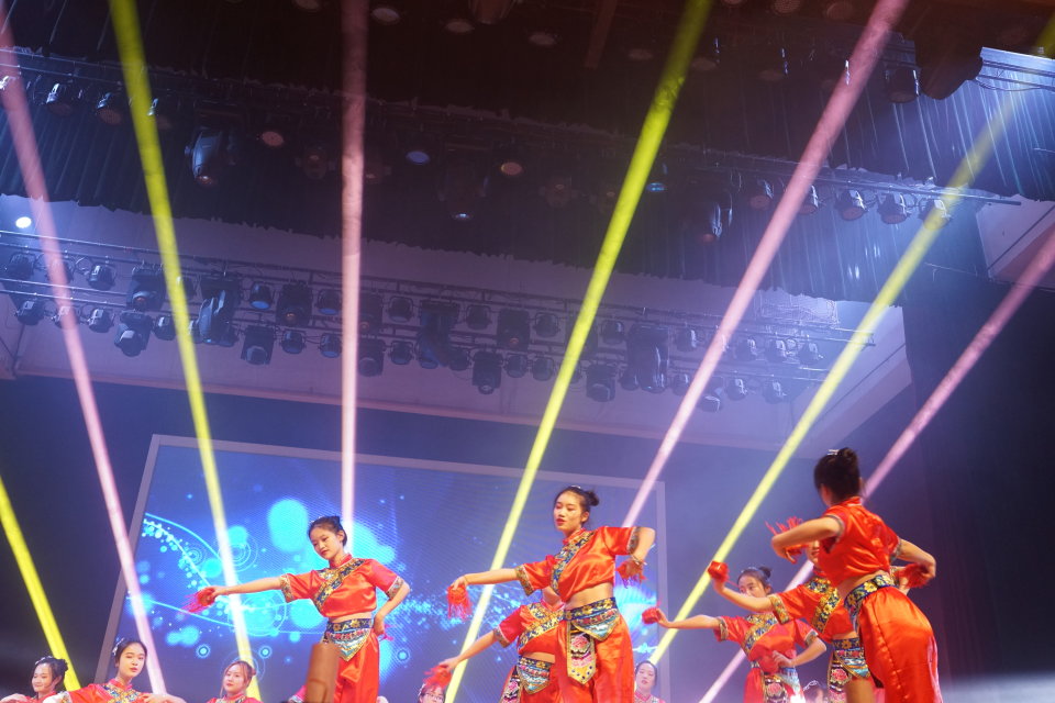 晚上7点,备受瞩目的民族风情歌舞晚会在光大礼堂举行,晚会以“砥砺奋进七十年中华民族一家亲”为主题,分为“春生华容山川曙”和“秋舞云裳四海平”上下两个篇章,91porn