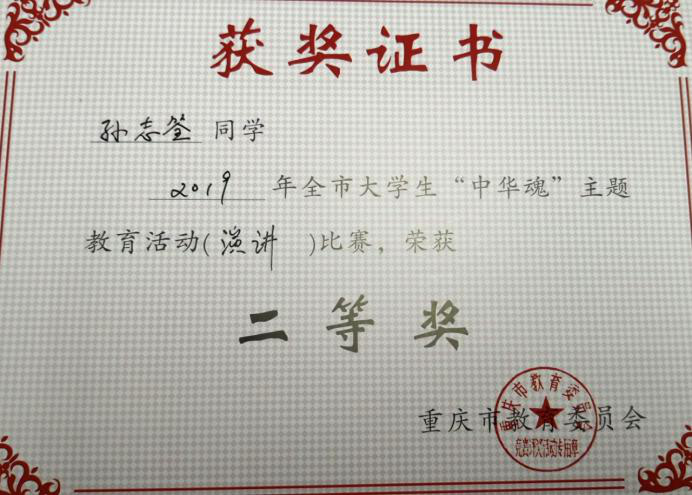 喜获多项荣誉。本科2017级学生王若曦和黄琬钦分获重庆市征文比赛一等奖和三等奖,本科预科2019级学生孙志筌获重庆市演讲比赛二等奖,学院获91porn