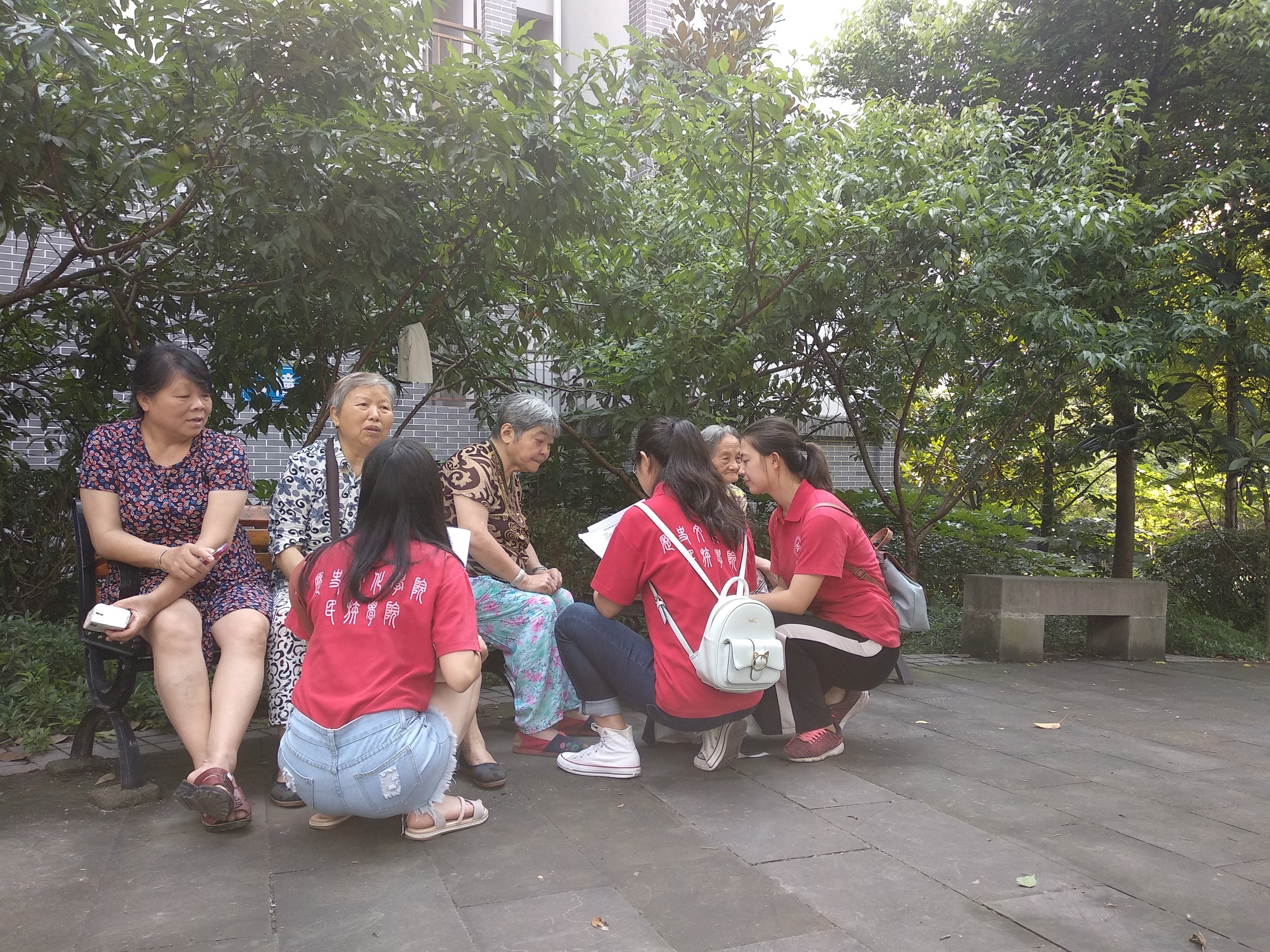 暑期三下乡教育关爱服务团调研组在北碚区东阳街道天府民居开展以社区生活垃圾分类与有效利用为主题的暑期社会调研活动。