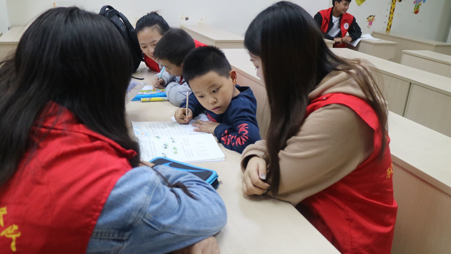 本次活动的各个环节进行得井然有序:作业辅导、主持人介绍重阳节、朗诵比赛、讲故事比赛、各种趣味活动,最后,写卡片或写信给自己的长辈。其中作业辅导环节十分温馨,志愿者和孩子们从学习谈到生活,从作业聊到理想,给孩子送去了心灵的温暖。