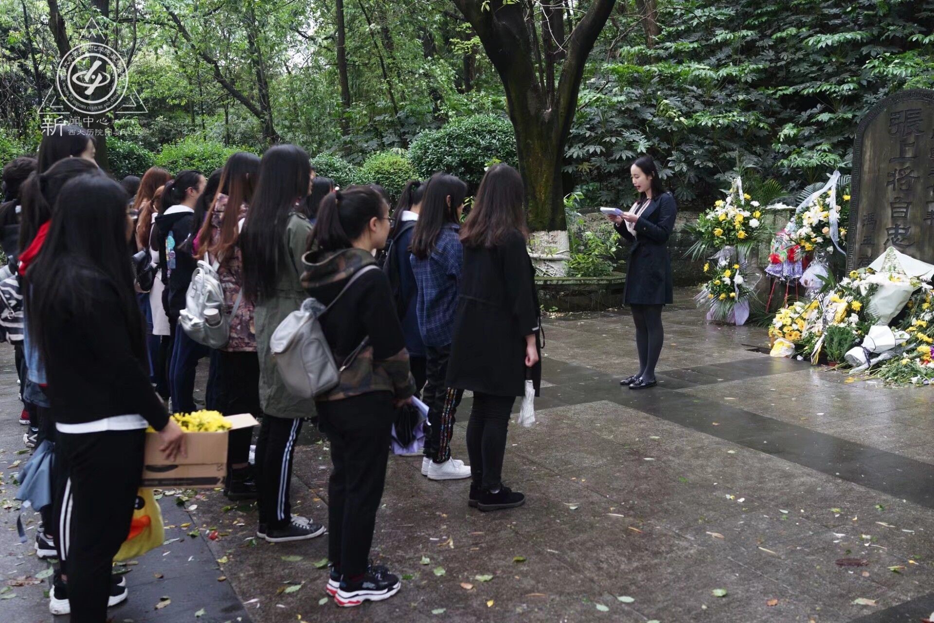 在博讲队左超名的引领下,同学们有条不紊地列队,静立于张自忠将军的墓碑之前。准备工作完毕后,扫墓仪式正式开始。