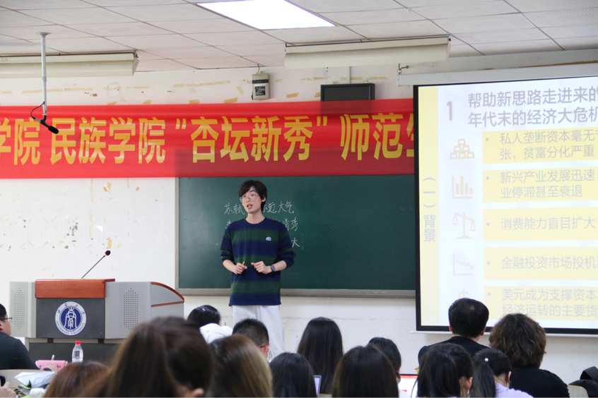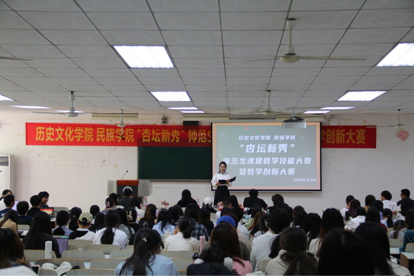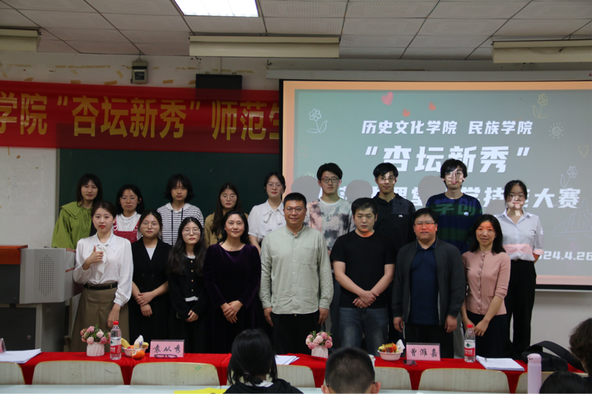 首先,十二位选手按照抽签顺序依次上台进行教学展示,各位选手用饱满的热情和扎实的教学技能带来了一场场生动精彩的模拟课堂。他们通过规范得体的教态、准确形象的语言、生动形象的讲授、独特新颖的教学风格,展现了新时代历史学师范生的风采和素养。