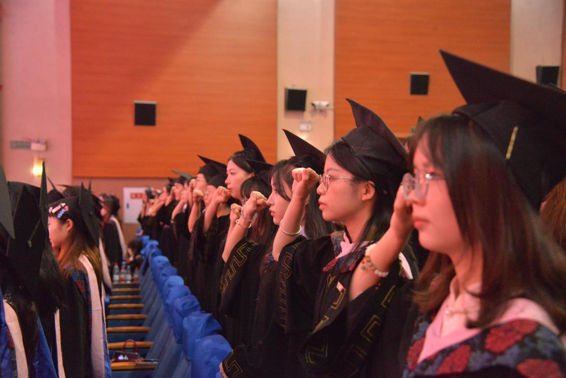 全体公费师范毕业生宣誓环节,公费师范毕业生薛浩宇同学带领全体公费师范生庄严宣誓,今后必将牢记校训,坚决履责,立志成为献身教育,服务社会的人民教育家!