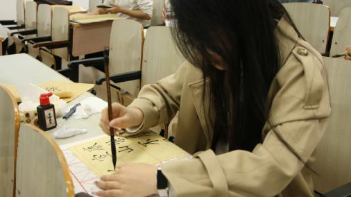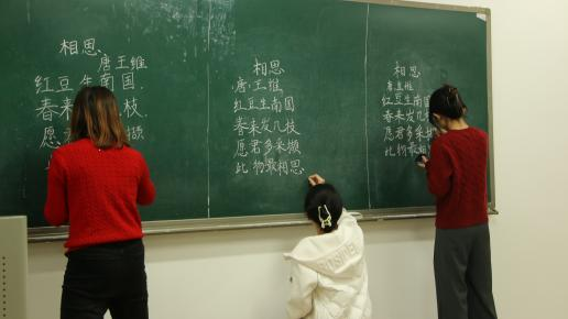 11月23日,“三笔字”测试在第十教学楼有序举行。全体同学先进行钢笔字书写,再依次上台进行粉笔字书写,台下同学则进行毛笔字书写。工作人员对粉笔字作品进行拍照整理,并收取钢笔字和毛笔字作品,交由评委进行评分,最终成绩在前16名的同学荣获优胜奖。