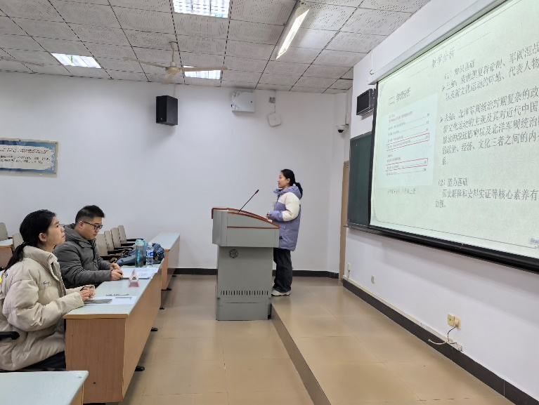 12月15日,说课讲课测试在第十教学楼举行,学院邀请资深教师担任评委。同学们自选中外历史纲要(上)中的一子目进行4分钟的说课与8分钟的讲课展示。各位师范生语言流畅、仪表大方、教态自然,展示了对教材的认识理解和对教学的热情。