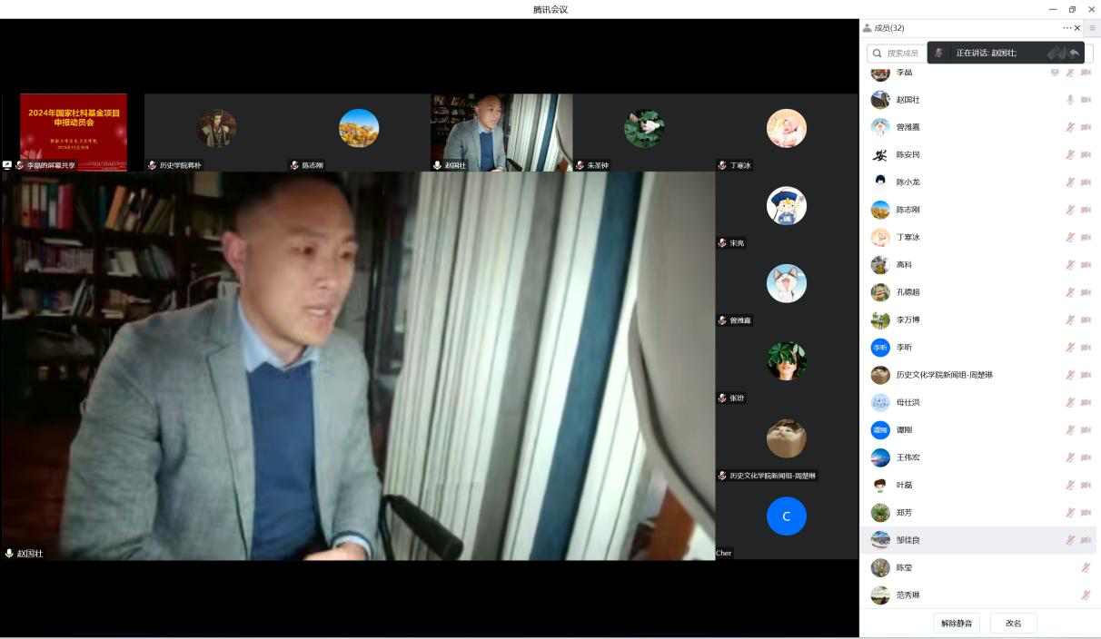 院长赵国壮、副院长李晶、学院2024年国家社科基金项目申报人出席会议。
