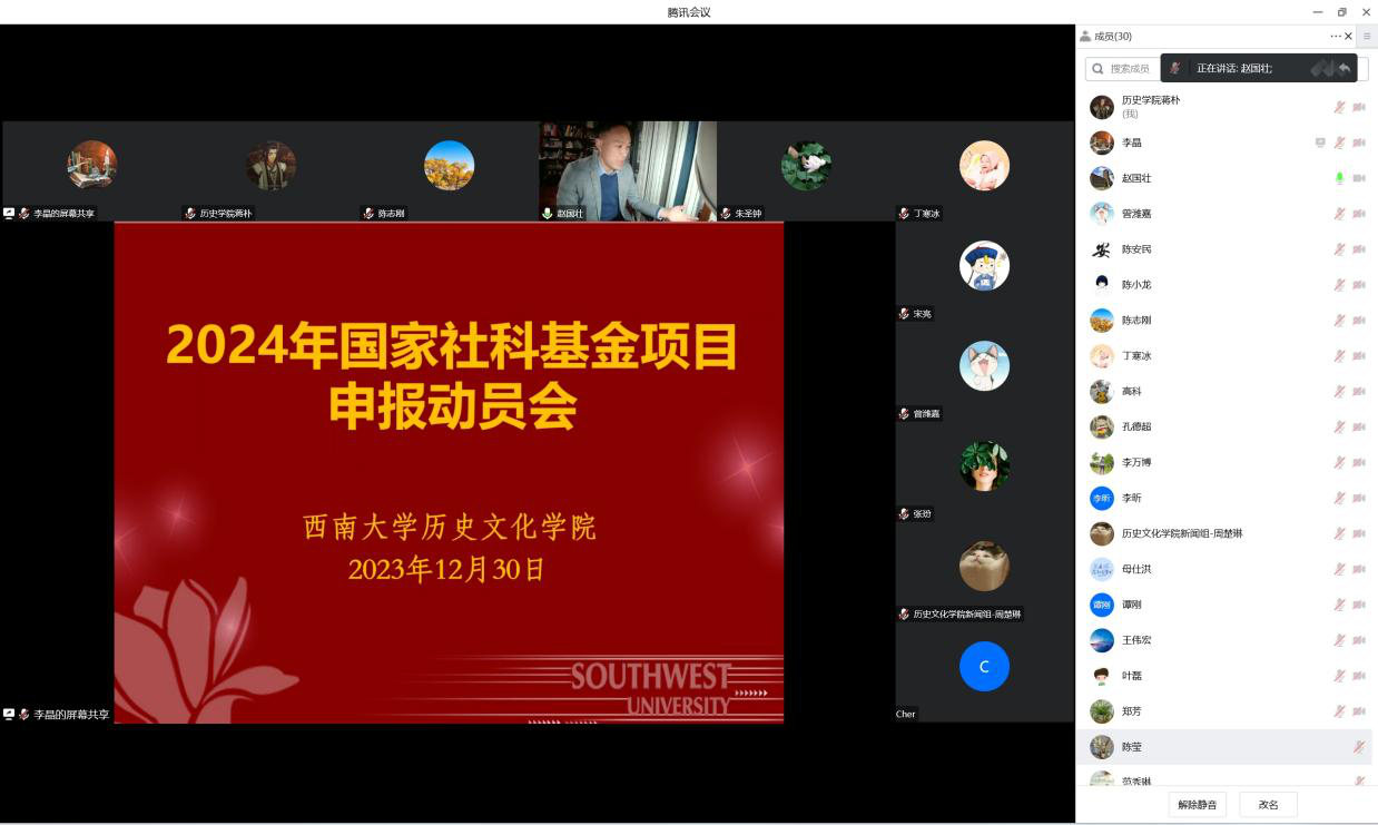 本次动员会是学院2024年国家社科基金项目申报系列活动的首场。预祝学院教师在2024年国家社科基金项目申报取得新的突破。