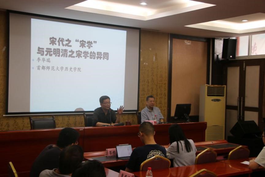 张文教授首先向到场师生介绍了李华瑞教授及其研究成果,尤其是李教授在宋代酒研究及宋夏战争与饥荒史的突出成就。随后,李华瑞教授以陈寅恪先生“华夏文化造极于赵宋之世”说法破题,认为这一观点的提出与其时史学发展、整体国家需求相适应。此外李教授还讨论了民国以来的宋史研究具有以理学(道学)代替宋学、忽略荆公新学历史地位两个偏向,指出理学直到南宋理宗以后才取得官学地位。