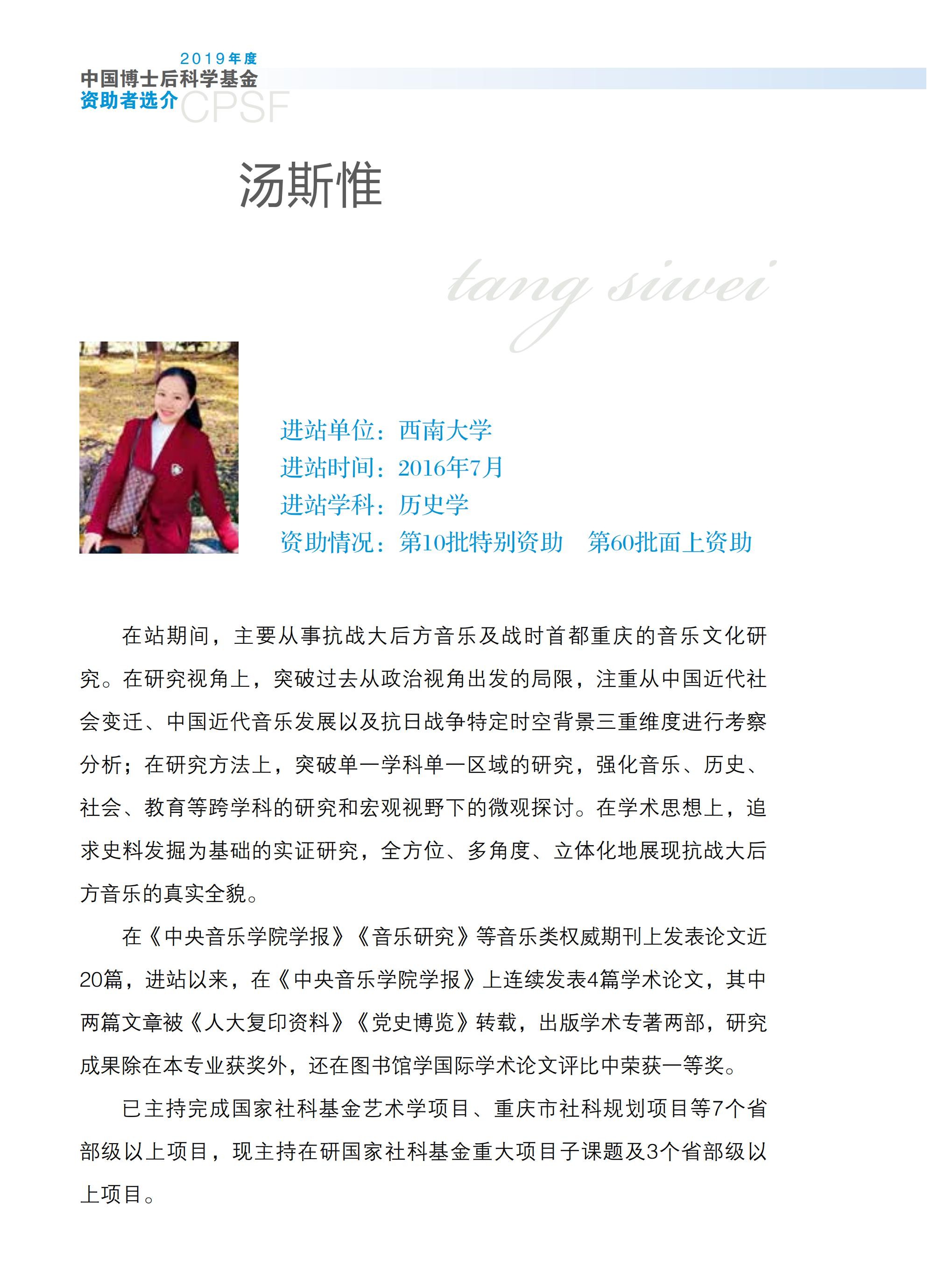 汤斯惟博士后