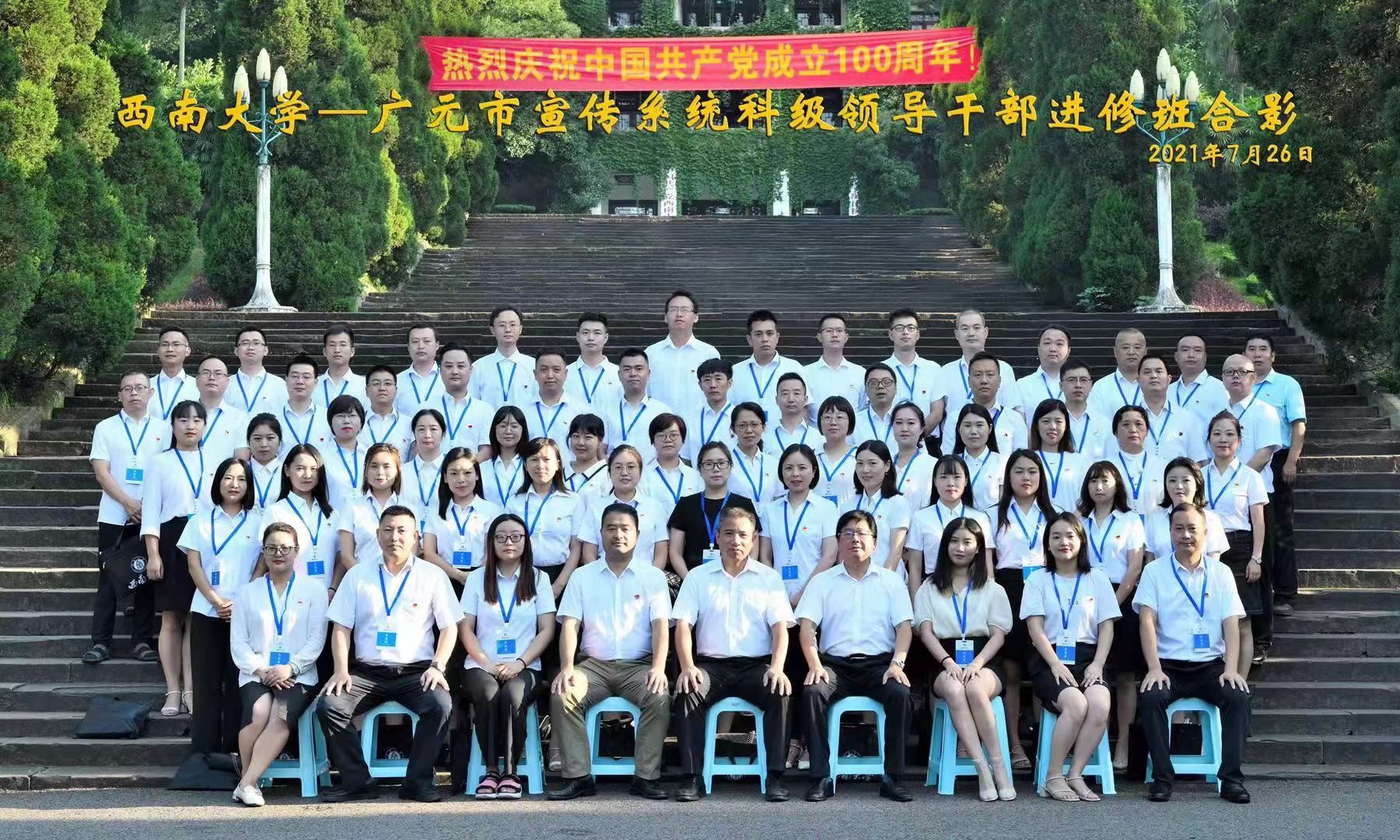 2021年7月26日-7月30日,91porn 承担的四川省广元市宣传系统科级领导干部进修班在校内完成了为期一周的系统学习,学院充分发挥在党史教育和传统文化教育方面的优势,紧紧围绕“把握新发展阶段、贯彻新发展理念、构建新发展格局”的专题,为该批青年干部构建了生动、精彩的课程体系,获得了学员干部的一致好评。