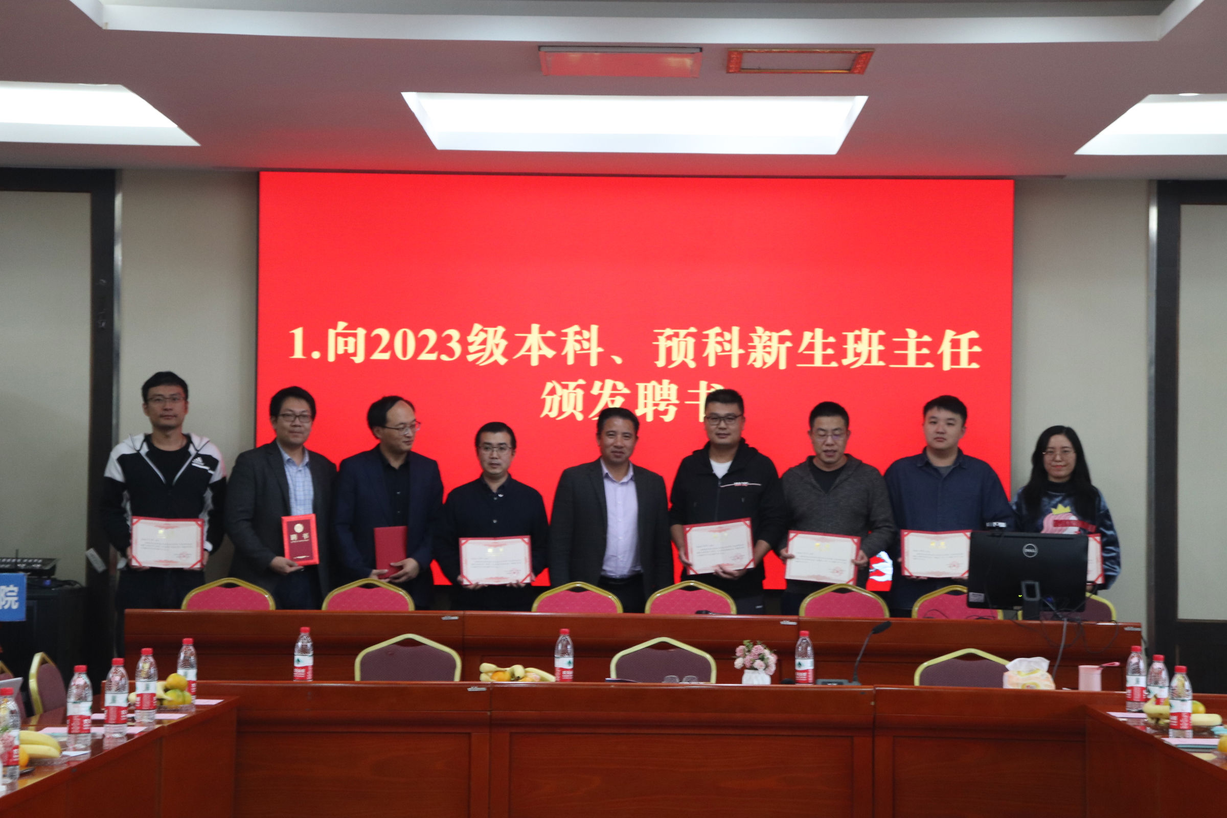张静副书记首先介绍了学院2023级班主任队伍构成情况,肯定了以青年教师为主体的班主任队伍对学生思想引导、学业指导和生涯教育发挥的重要作用。罗庆昌书记向新聘的2023级本科、预科班主任颁发了聘书。