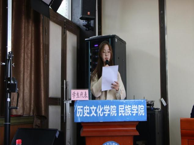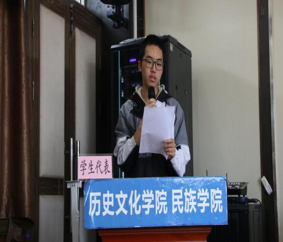 历史学拔尖创新实验班、民族学拔尖创新实验班的学生代表在发言中对学校、学院所提供的拔尖创新成长平台表达感谢,并分享了入学三个月以来对历史学、民族学专业学习的心得体会,表达了对加入“拔尖创新实验班”的期待与憧憬,立下“开拓进取、踏实研习、全面发展”之志。