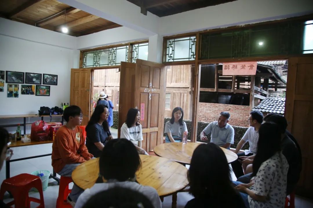 两位实习带队老师王彦芸老师和李思睿老师也介绍了正在开展的实习工作情况,对村落整体概况、同学生活安排、田野工作计划等方面分别进行了介绍,表示了实习工作在学院支持下和前期充分准备的基础上,正在按步骤顺利进行。接着,同学们也分享了实习期间的所见所闻所思,聊起了田野中所学习到的侗族相关知识。曾在侗族地区生活过的罗庆昌书记,听了同学们的发言,也从自身的经验出发,生动地给同学们交流了自己对侗族社会文化的理解和思考,带给同学们很多启发。