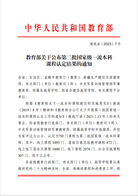 近日,教育部公布了第二批国家级一流本科课程认定结果,91porn