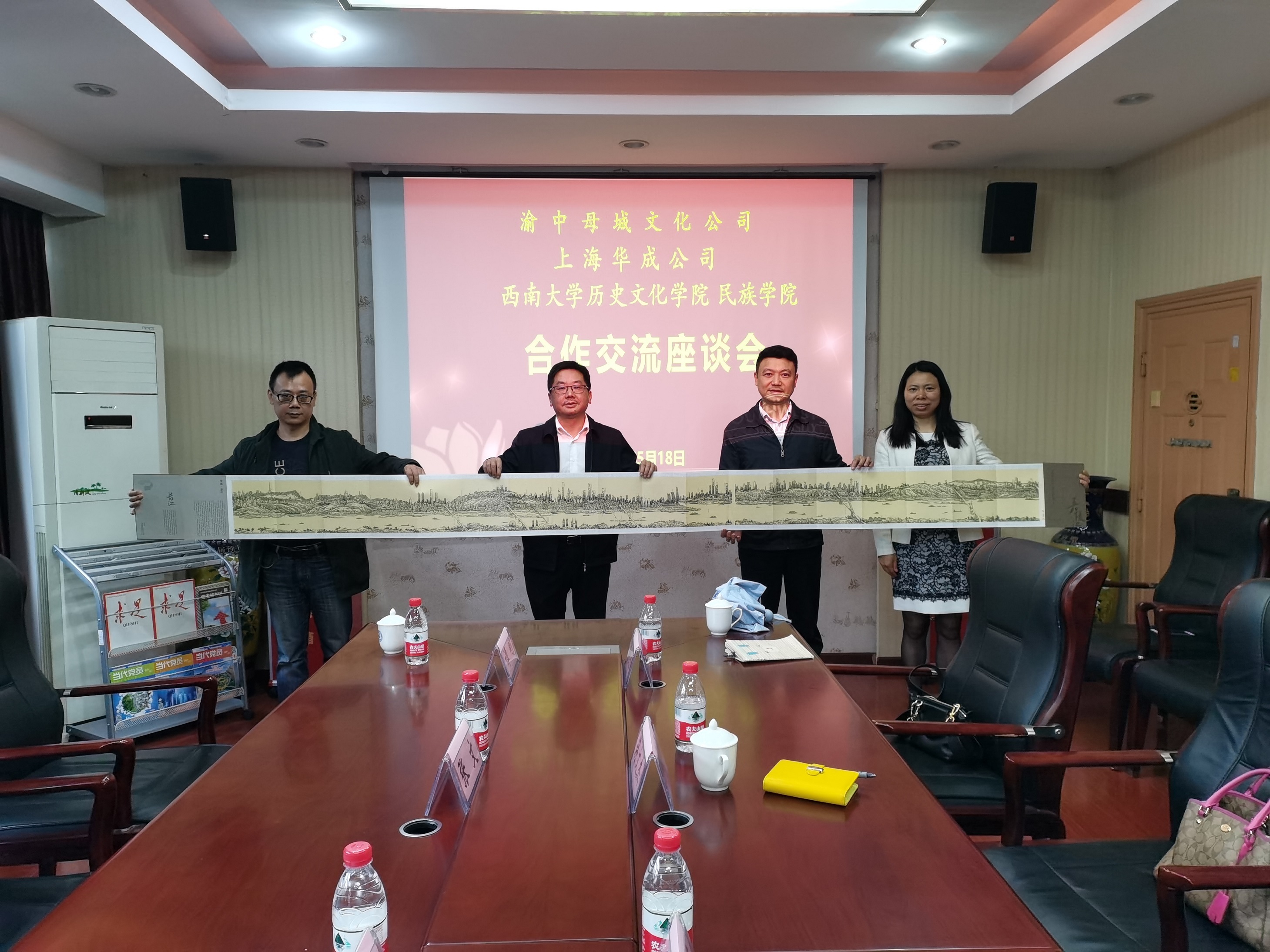 2022年5月18日下午,渝中母城文化公司董事长柯苇、上海华成公司经理项立波一行,来院开展合作交流。邹芙都院长、赵国壮副院长、张文教授、谭刚教授、卞兆明副教授参加交流会。