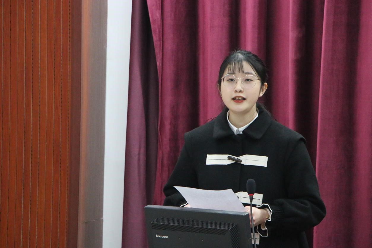 之后,2019级历史学公费师范生实习学生代表任颖同学做了精彩发言。她表示要在实习中端正态度、服从安排、坚定信念、砥砺前行。同时坚定表达了以十九届六中全会精神为指引,担当时代重任,出色完成实习工作的决心、力量与勇气。
