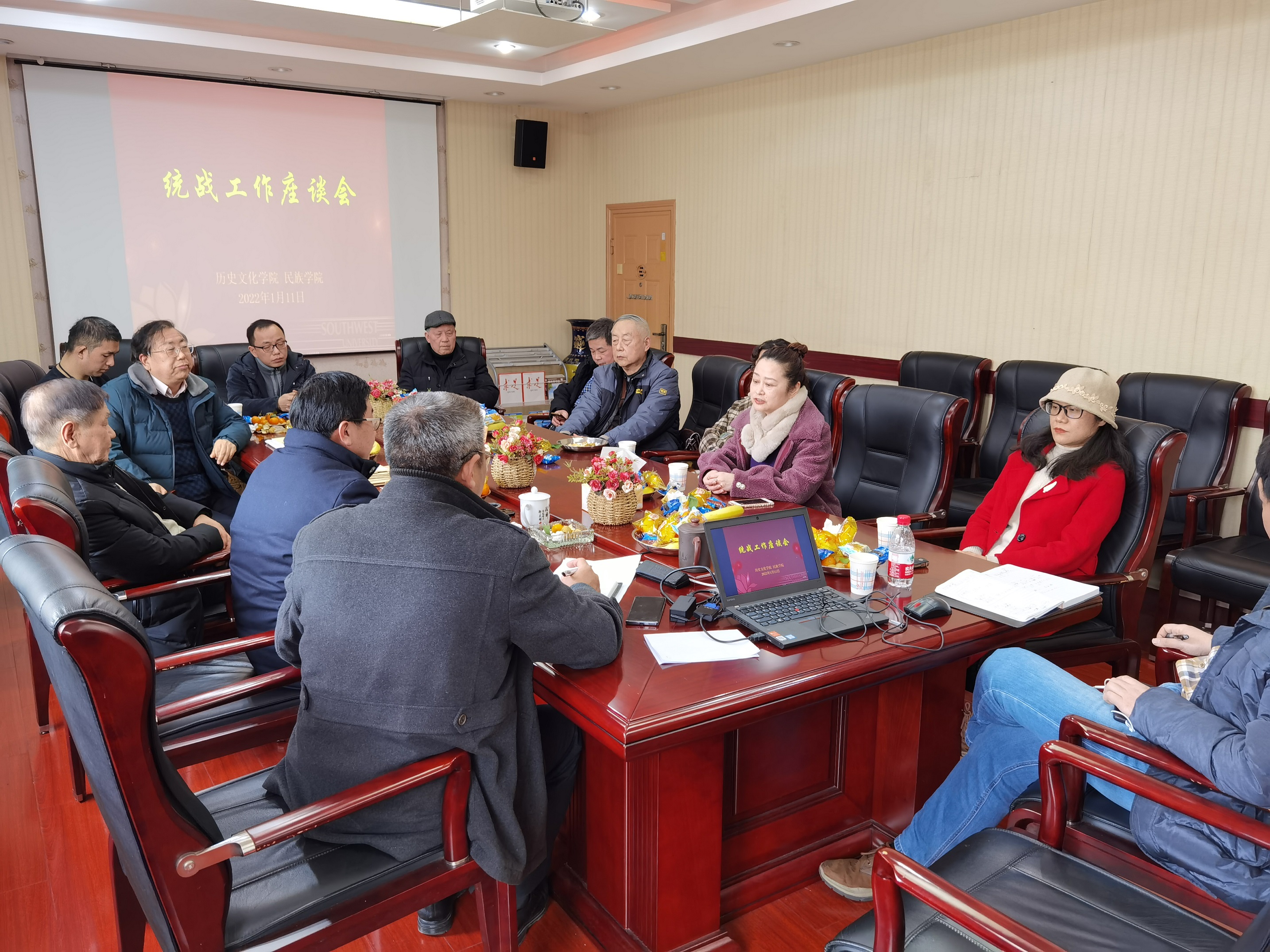 2022年1月11日上午,学院在520会议室召开统战工作座谈会。学院领导班子、离退休和在职的各民主党派成员参加会议。会议由学院党委书记罗庆昌主持。