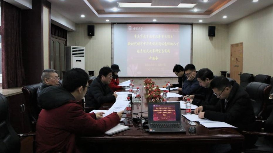 高等教育教学改革工作,研究新时代高校人才培养模式创新路径,将十九大精神贯彻进教学改革工作中, 2021年12月17日上午,重庆市高等教育教学改革研究项目重大项目“新时代铸牢中华民族共同体意识的人才培养模式改革研究与实践”开题会在学院举行。项目组负责人邹芙都教授、田阡教授与全体项目组成员参加本次会议,学院副院长李晶主持会议。