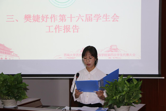 大会审议并通过了学院第三届学生代表樊婕妤同学所作的题为《永葆初心跟党走 砥砺奋进勇前行——团结凝聚广大青年学生在新征程中接续奋斗》的工作报告。