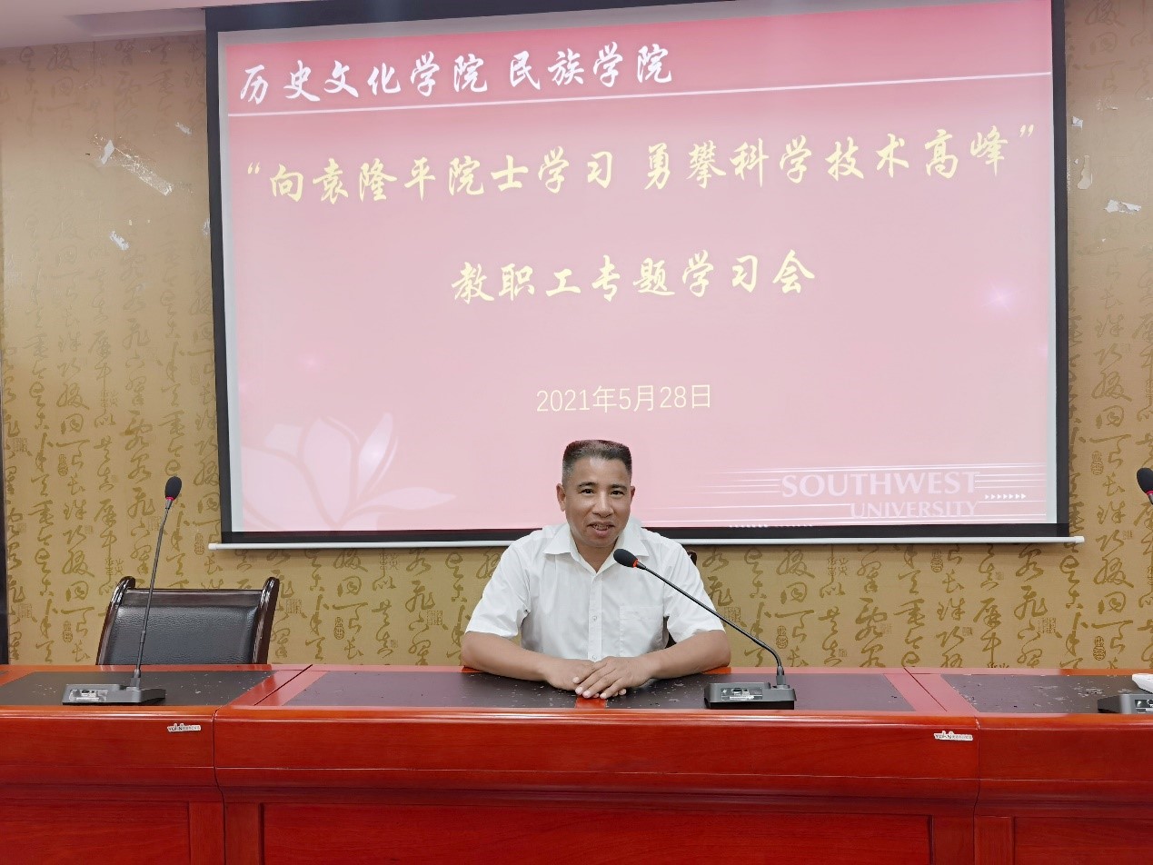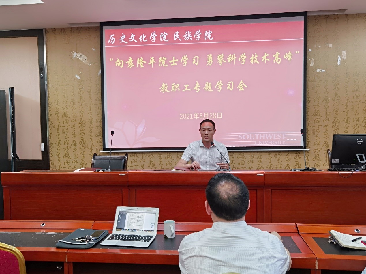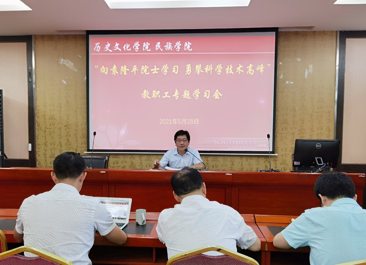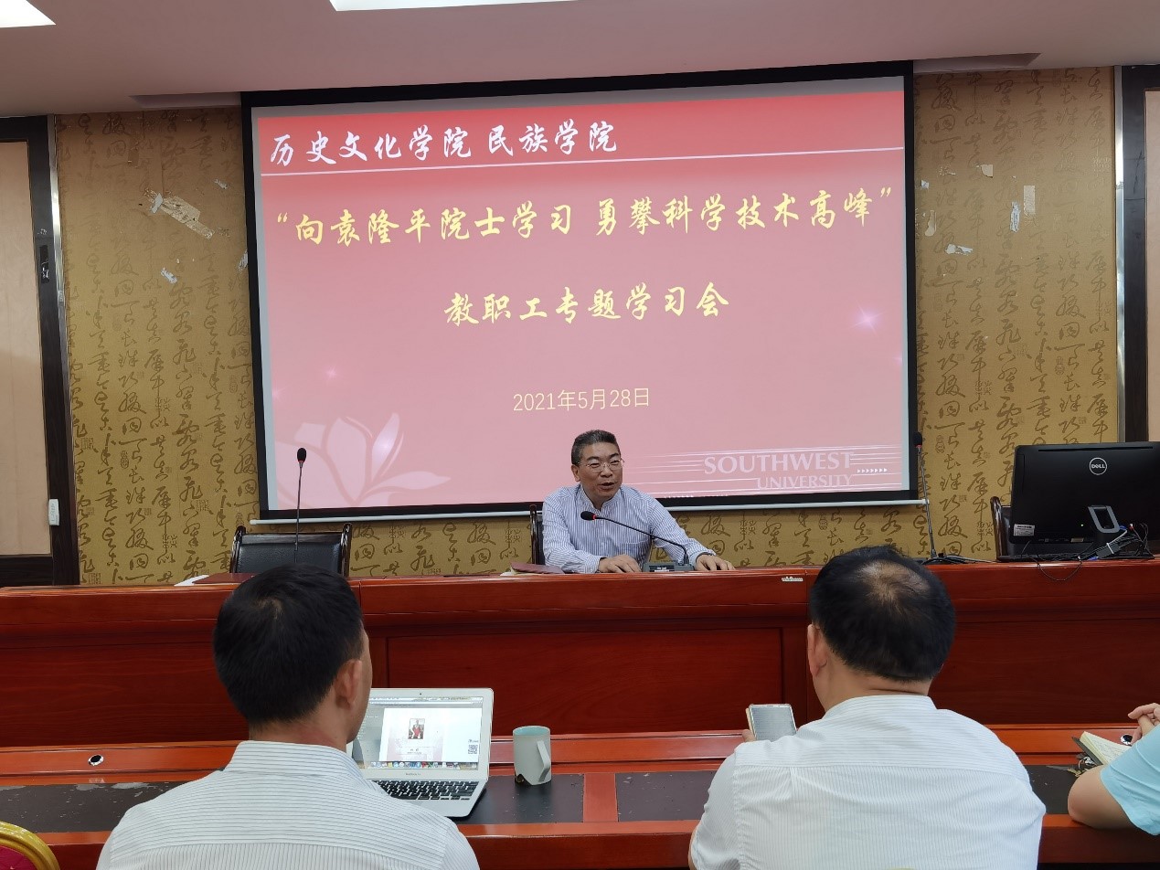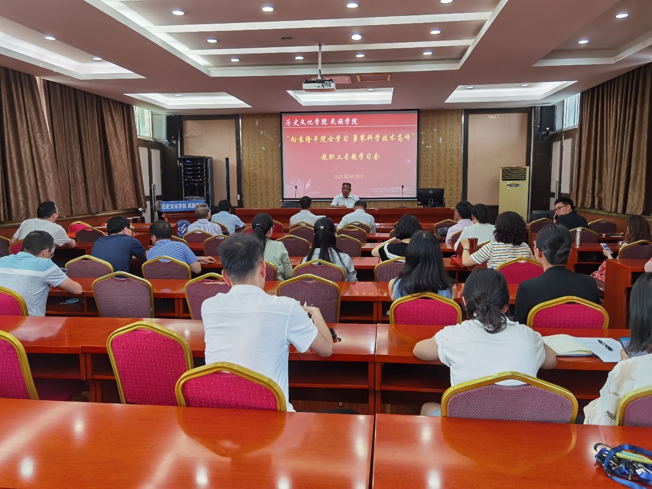 全体教职工在七楼报告厅组织开展“向袁隆平院士学习 勇攀科学技术高峰”的专题学习活动,学院领导班子,全体教职工参与本次专题学习。