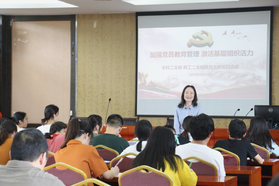 党委书记徐天虹同志介绍了此次活动的背景和意义,她指出,本次主题党日活动是学院党委立足学院实际,在党建工作中进行的一次积极探索和有效尝试,从内容到形式充分结合了“教师与学生”、“校内与校外”、“理论与实践”的原则。同时,此次活动内容紧密结合毕业生党员教育,对毕业生党员们起到了一个强化内容,坚定理念的作用。随后,师生党员在本科二支部书记周燕的带领下学习了《中国共产党党员教育管理工作条例》的主题内容。党员们围绕学习内容展开了热烈讨论。