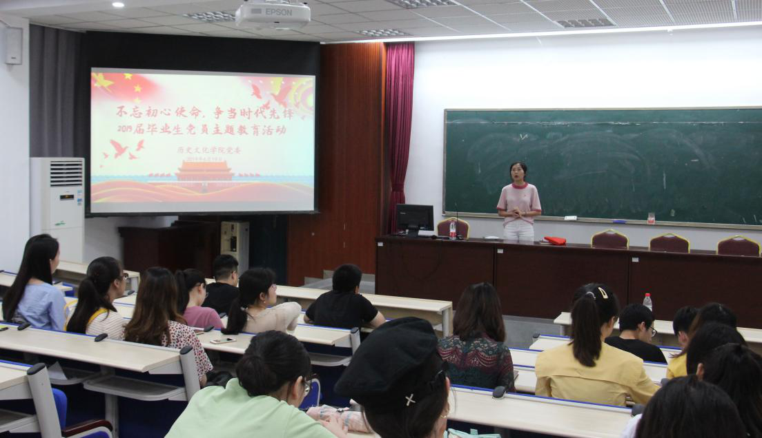 党委“不忘初心使命,争当时代先锋——2019届毕业生党员主题教育活动暨重温入党誓词活动”在荟文楼442教室顺利举办,此次活动由学院党委书记徐天虹同志主讲,学院专职组织员周燕老师主持,2019届全体本科、硕士毕业生党员共同参加了本次教育活动。