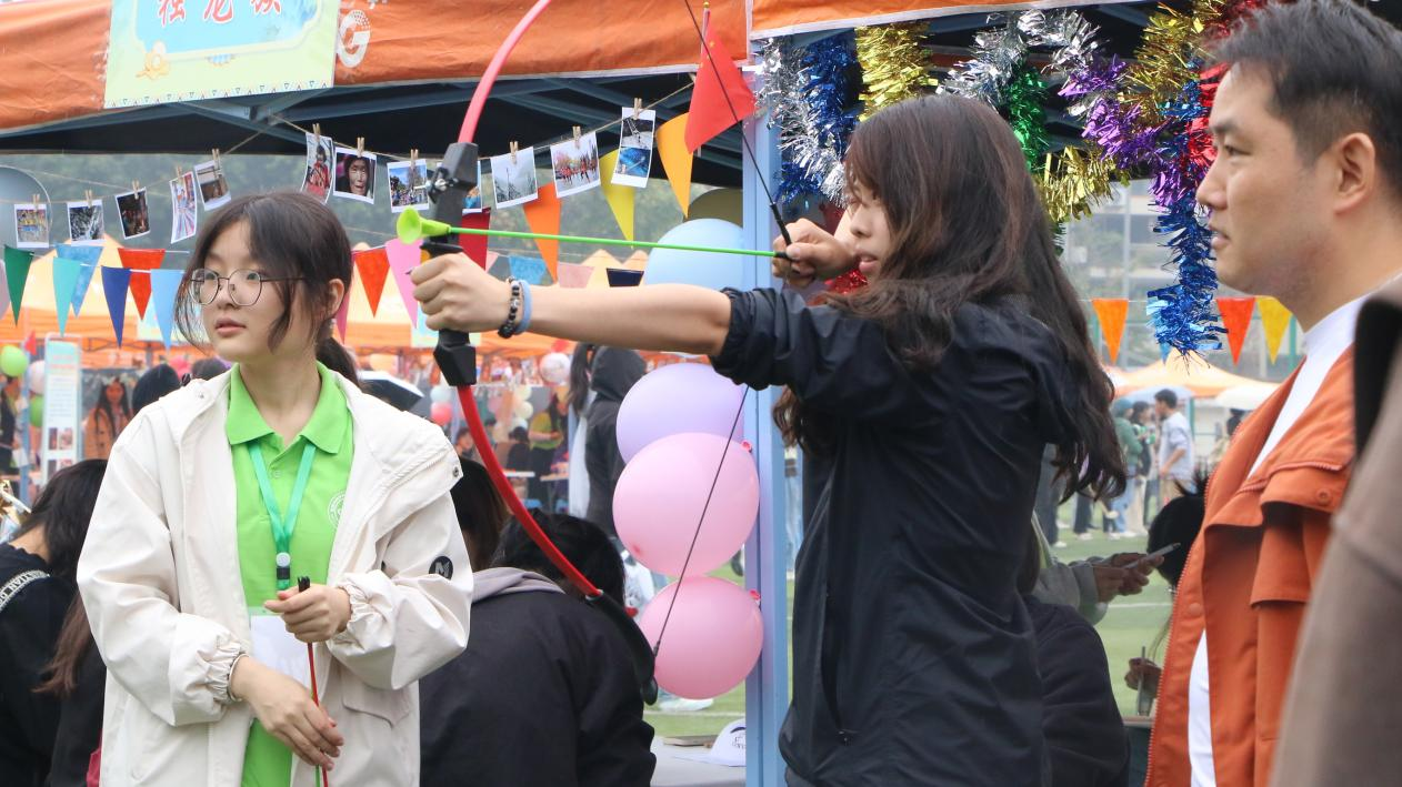非遗文化体验区展出传统戏剧、传统美术、传统技艺、 传统医药、传统民俗等非遗文化。在体育竞技区,同学们可以体验投壶、板鞋竞速、抛绣球等多个传统竞技项目。另外还设置了民族学生党支部、红石榴成长社两个展台。广大师生积极参与游园活动,在亲身体验中感受中华文化的博大精深、兼收并蓄,潘洵一行来到游园会现场,体验民族传统体育竞技项目,与各民族师生交流互动。