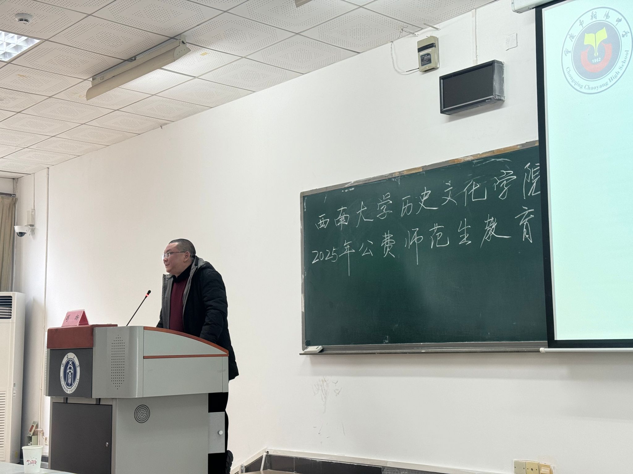 附属中学历史教研组长杨泽新老师和朝阳中学历史教研组长苟扬老师分别从学科实习与班主任培养两方面对同学们进行培训。