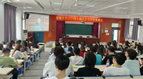 组织师生代表在荟文楼505教室集中收看现场直播,共同铭记历史、缅怀先烈、珍爱和平、开创未来。学院党委副书记张静、2023级辅导员高倩参加活动。