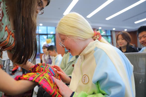 2025级少数民族预科学生来到重庆市特殊教育中心,与一群“特殊的孩子”—视障青少年同上一堂民族文化课。本次活动以“听见民族韵牵手共成长”为主题,通过“听”“触”“品”“投”等沉浸式民族文化体验的形式,引导孩子们在互动中感悟中华民族文化魅力,进一步厚植中华民族共同体意识,成为校际协同推进思政教育的生动实践。
