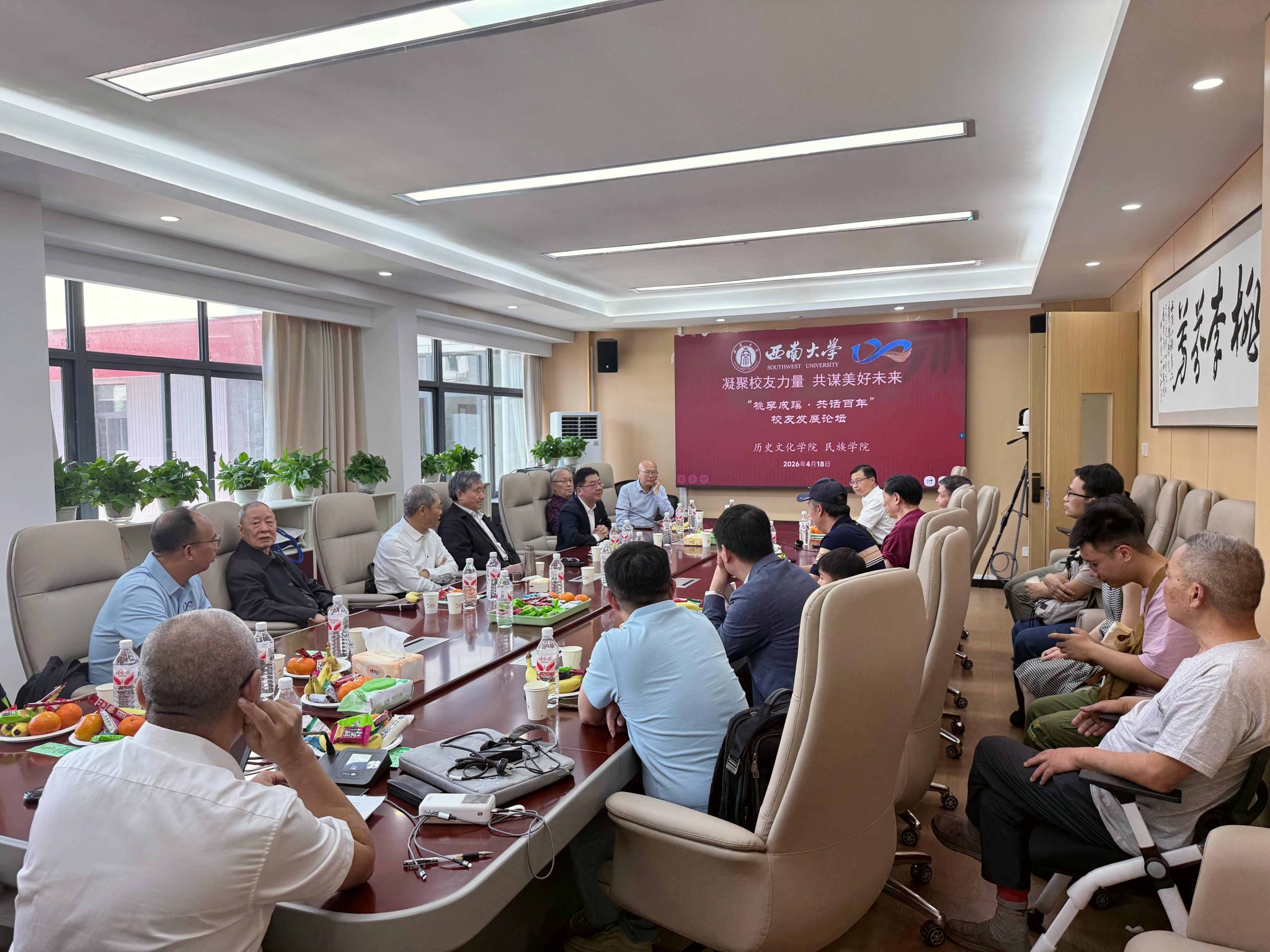 桃李成蹊,共话未来。校友发展论坛于荟文楼520会议室顺利举行。本次论坛由学院党委书记罗庆昌主持,学校党委常委 副校长邹芙都出席并致辞。部分政、商界校友代表重返校园,与学院资深教授、院领导欢聚一堂,共忆求学岁月、共叙师生情谊、共商学院发展,现场氛围温馨而热烈。