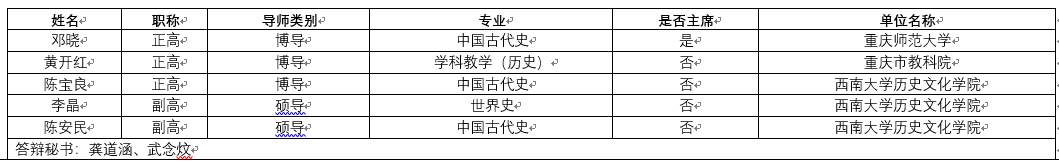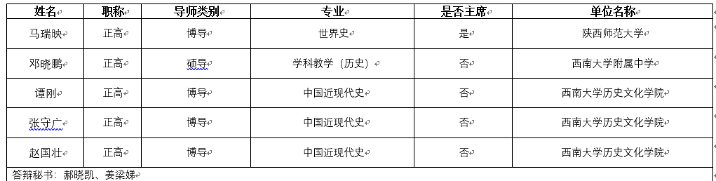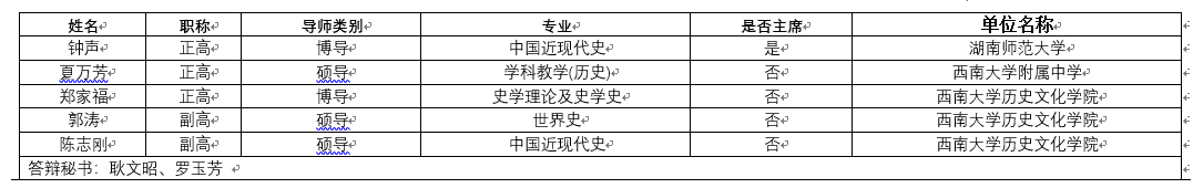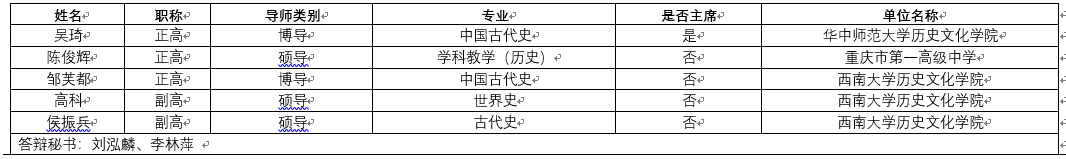 2022年春季学期—硕士—学科教学(历史)(第一组)学位论文答辩委员会组成