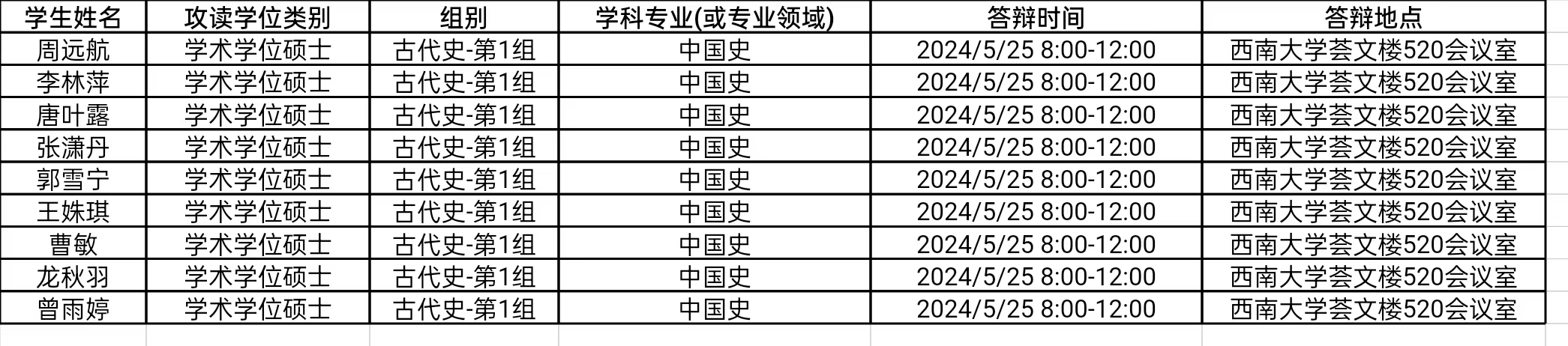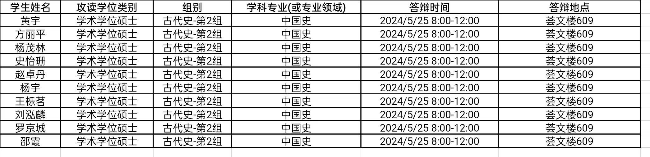 91porn 2024年春季学期学位论文答辩安排公告(古代史)