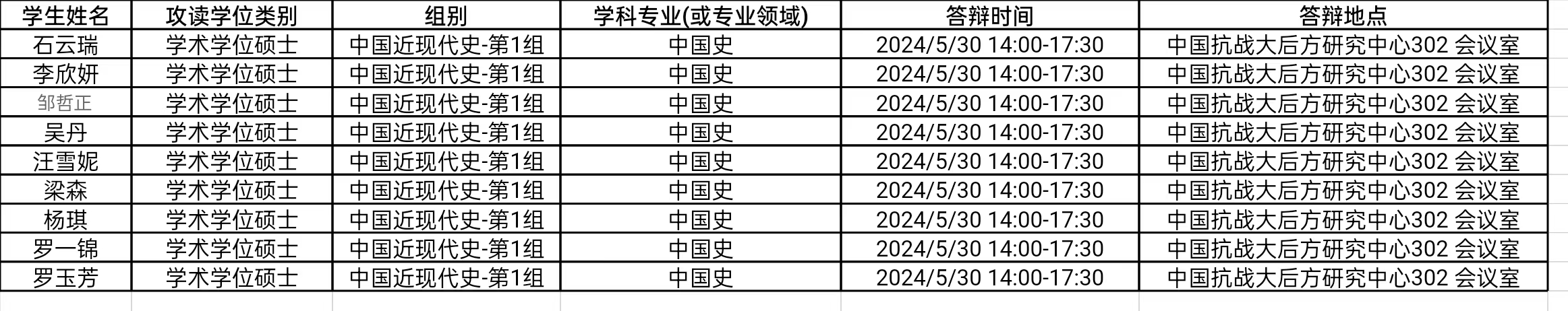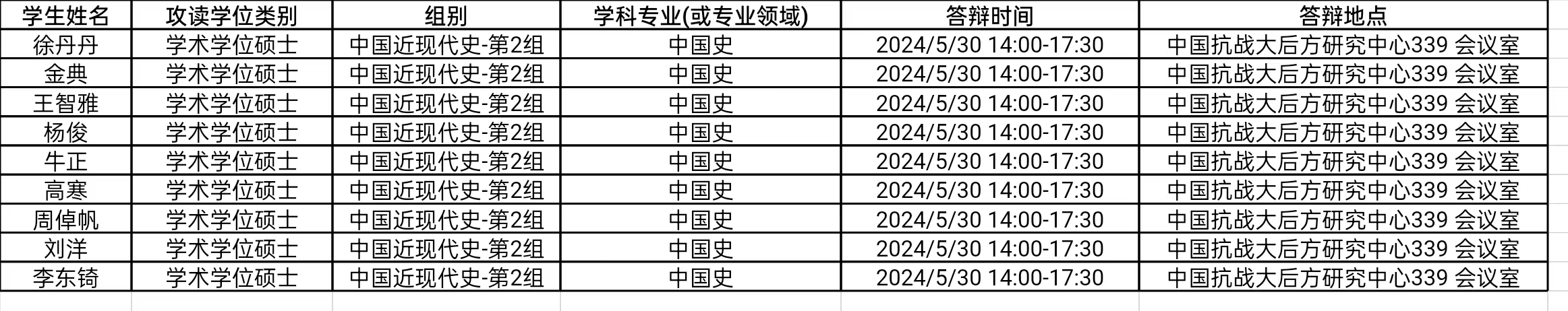 91porn 2024年春季学期学位论文答辩安排公告(中国近现代史)