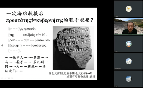 陈莹副教授作为与谈人,从研究方法的创新等角度高度评价了徐晓旭教授带来的精彩讲座,并以斯特拉波《地理志》的文本为例,讨论亚历山大东征后的历史情境可能对希腊人有关中亚和高加索一带的地理观念造成的影响,徐教授就此问题做出回应,指出古希腊人长期传承的地理传统以及古代地理环境的变迁都是需要考虑的因素。最后在提问环节,线上线下的师生分别就古希腊人的世界观念,中希史学发展,丝绸之路上知识传播的方式以及中希文化交流等问题向徐教授请教,徐教授一一做出细致解答。本次讲座持续了3个多小时,在热烈而充分的讨论中落下帷幕。讲座内容体现了徐晓旭教授最近的研究成果,是对中西交通史学术传统的一次突破性尝试,强调了希腊化研究视角对于丝绸之路研究的意义,具有重要启发性。