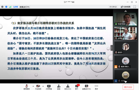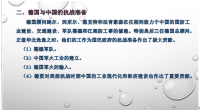 1938年以后中德关系恶化,苏联则表现出了积极援华的态度,多次提供援华武器订单,支持着中国抗日战争。陈教授还大胆推断蒋介石固守南京的期待就在于苏联曾言“到生死关头时,俄当出兵,绝不坐视”,南京保卫战的目的也是为了争取苏联对日宣战。苏联最后虽然没有出兵,但是抗战期间苏联对中国的大量军事援助和俄化师的建立也有力地支持了中国抗战。