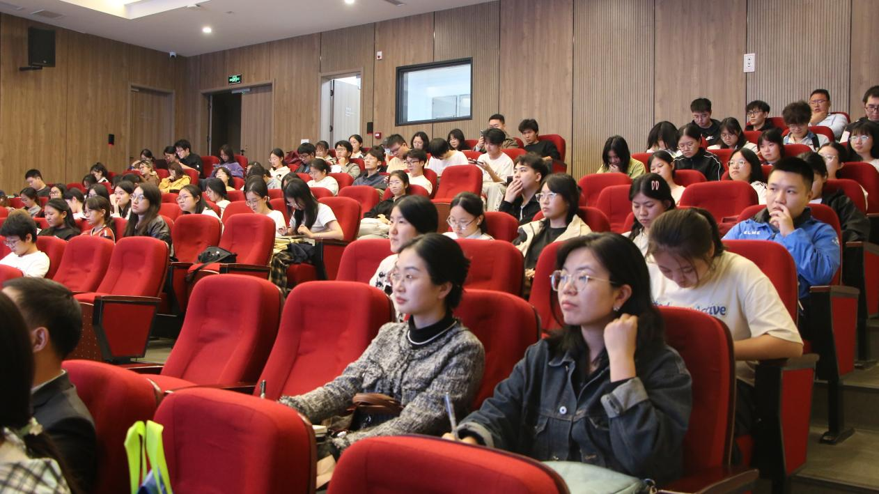 张明富教授主持,学院内外近百名师生聆听本次讲座。