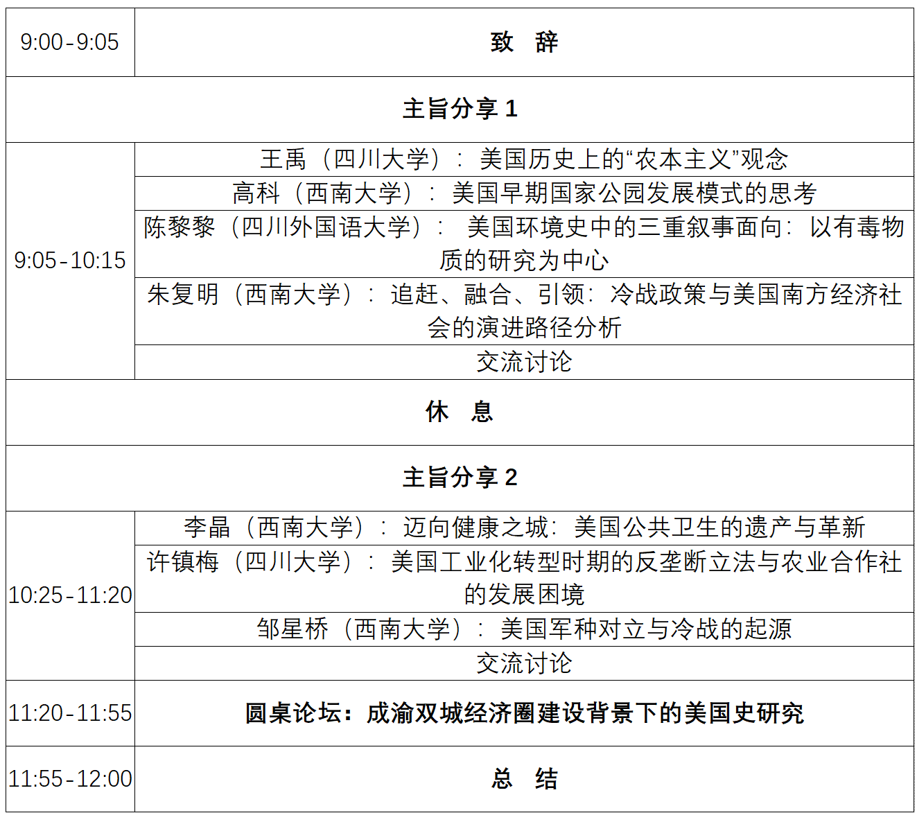 会议议程|成渝地区美国史研究工作坊