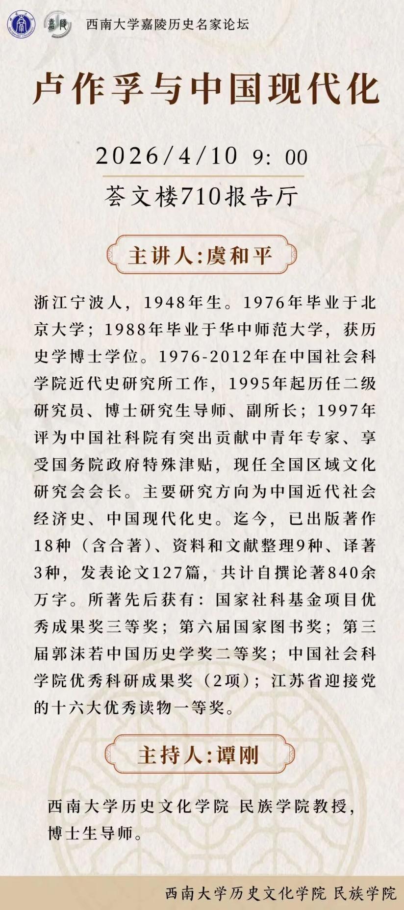 虞和平,浙江宁波人,1948年生。1976年毕业于北京大学;1988年毕业于华中师范大学,获历史学博士学位。1976—2012年在中国社会科学院近代史研究所工作,1995年起历任二级研究员、博士研究生导师、副所长;1997年评为中国社科院有突出贡献中青年专家、享受国务院政府特殊津贴,现任全国区域文化研究会会长。主要研究方向为中国近代社会经济史、中国现代化史。迄今,已出版著作18种(含合著),资料和文献整理9种、译著3种,发表论文127篇,共计自撰论著840余万字。所著先后获有:国家社科基金项目优秀成果奖三等奖;第六届国家图书奖;第三届郭沫若中国历史学奖二等奖;中国社会科学院优秀科研成果奖(2项);江苏省迎接党的十六大优秀读物一等奖。